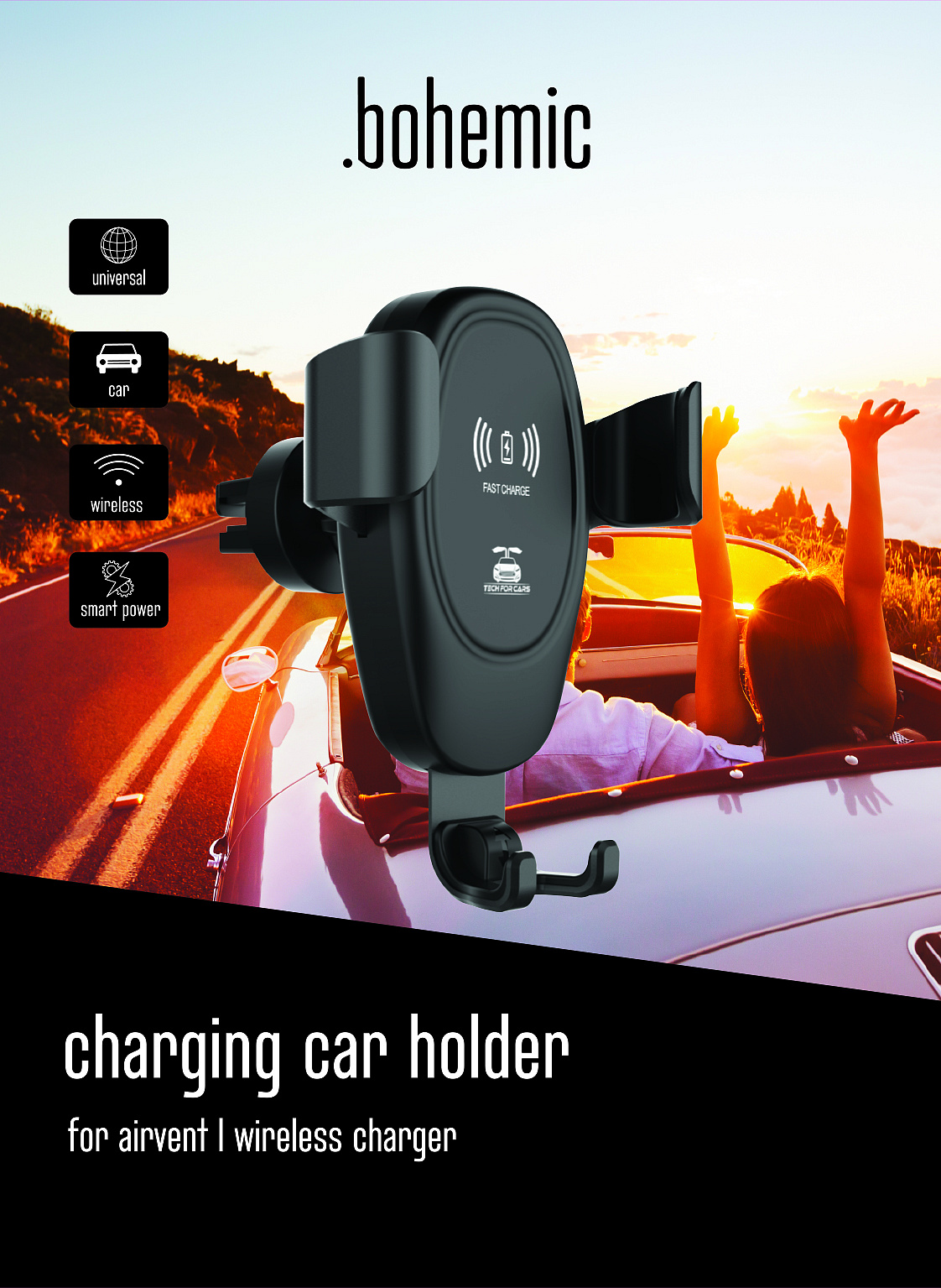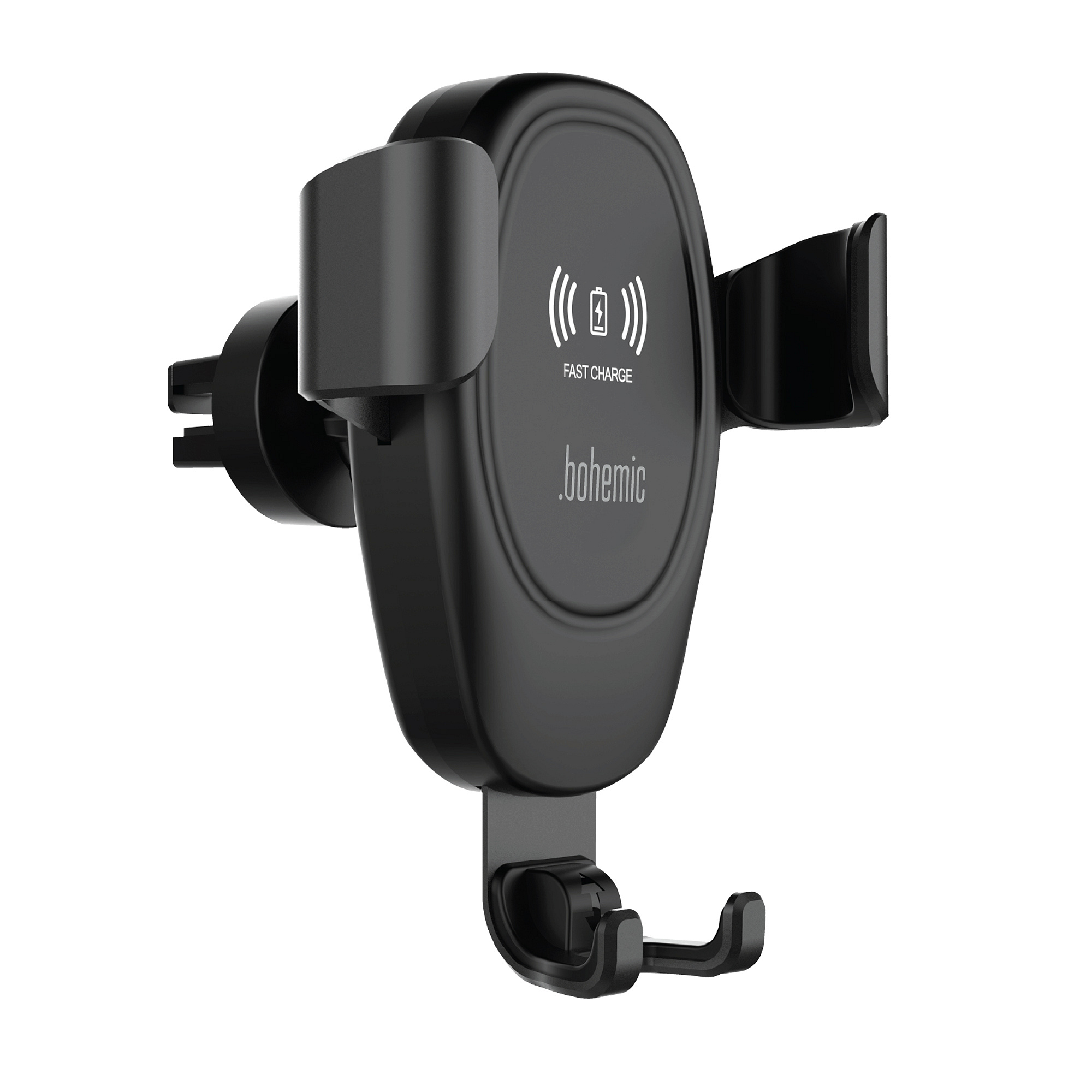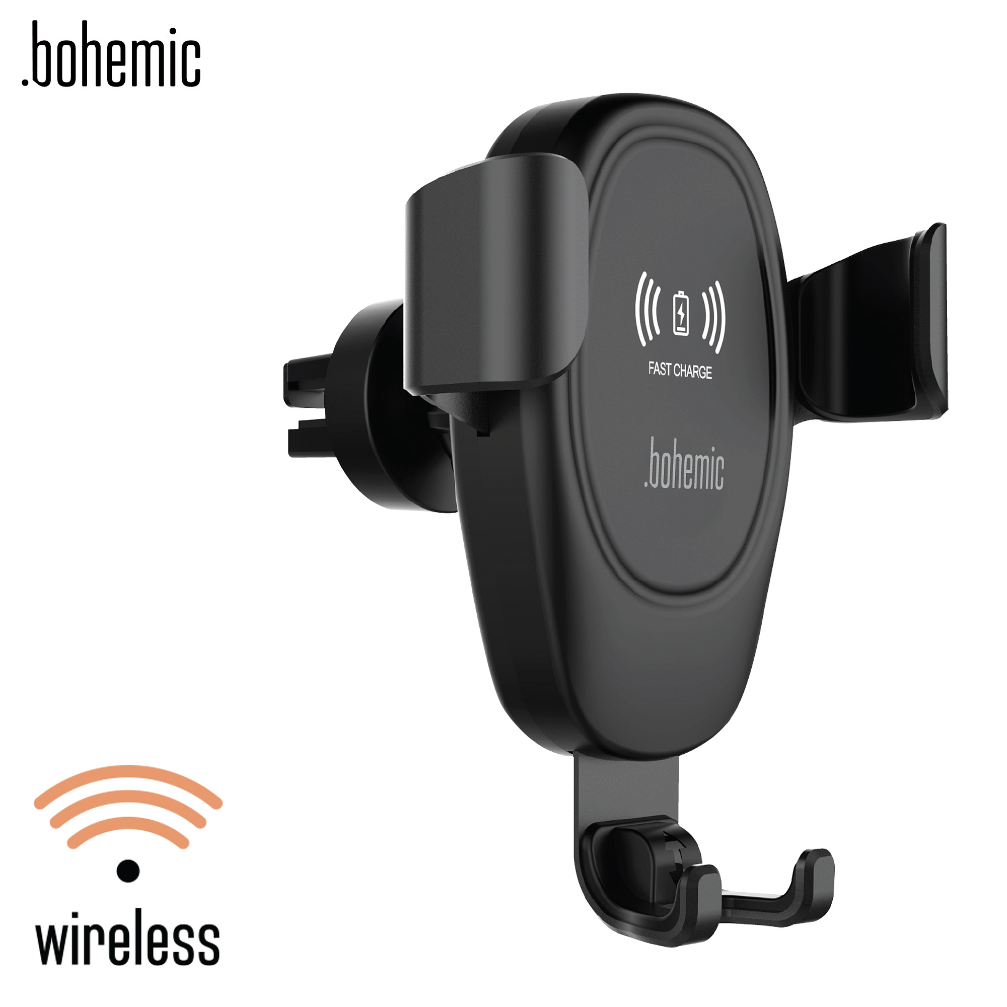Bezdrátový nabíjecí držák do auta pro airvent. Upravte držáky tak, aby odpovídaly vašemu telefonu, a poté nainstalujte držák do větracího otvoru automobilu.