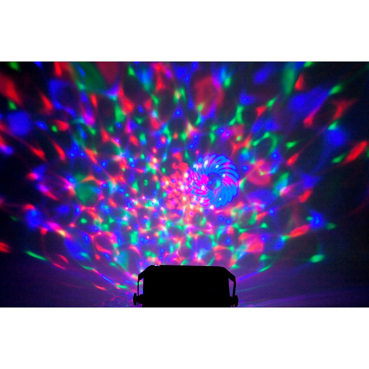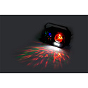 This versatile set combines par spots, a derby effect, a laser, and a strobe in one unit. The par spots create a colorful wash, the derby effect fills the room with dynamic patterns, the laser projects sharp beams, and the strobe adds an intense, pulsating atmosphere. Thanks to the included remote control, you can easily cycle through the different modes and tailor the show to the music or mood of the moment.