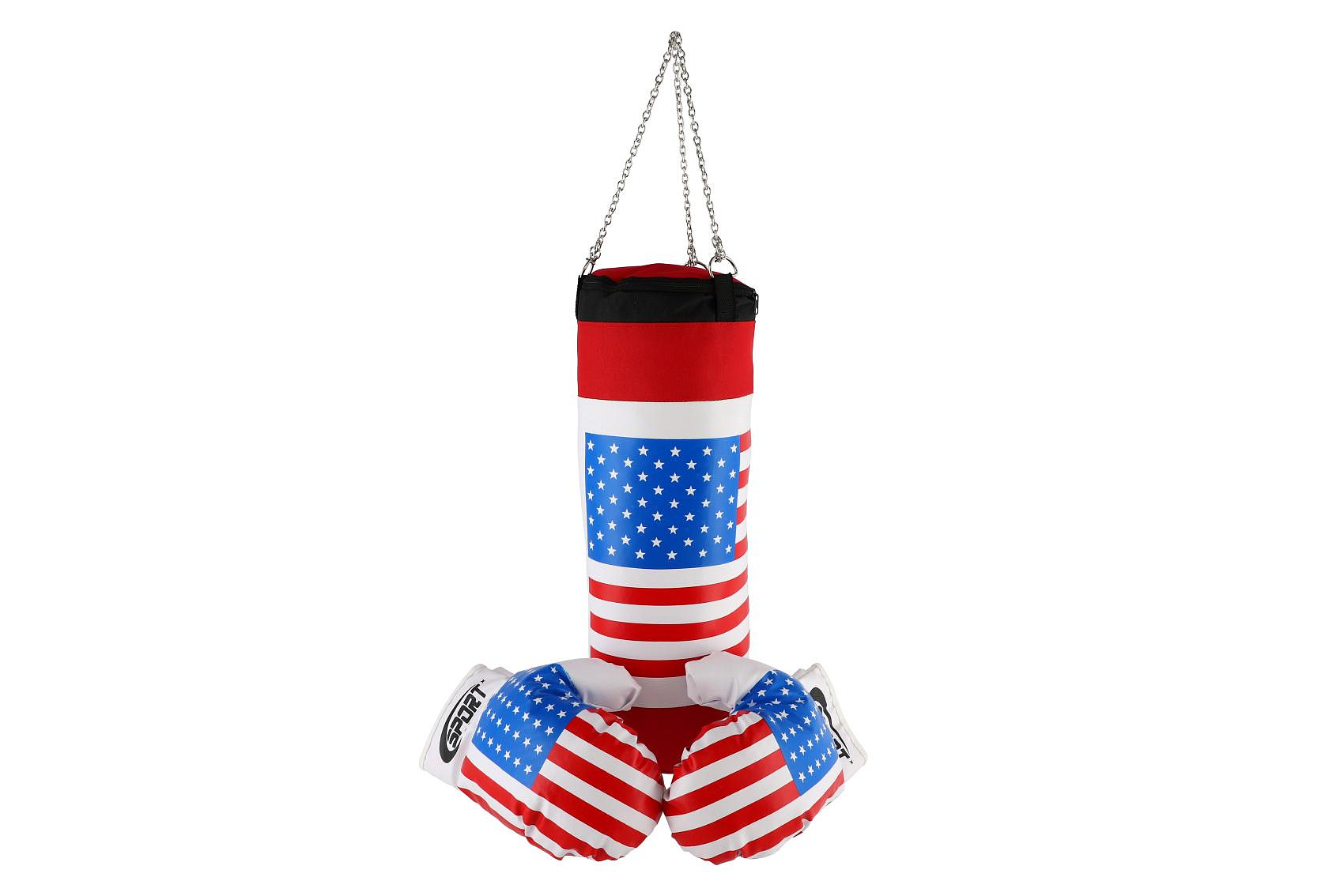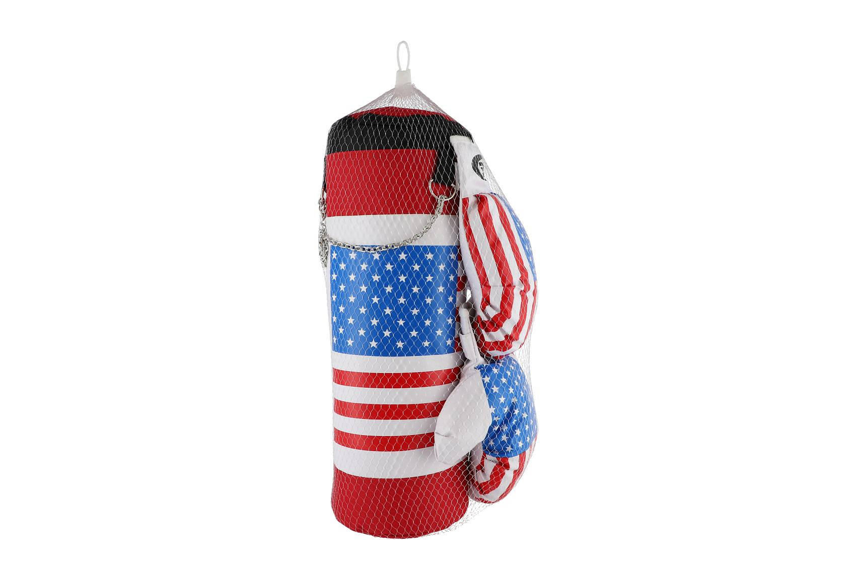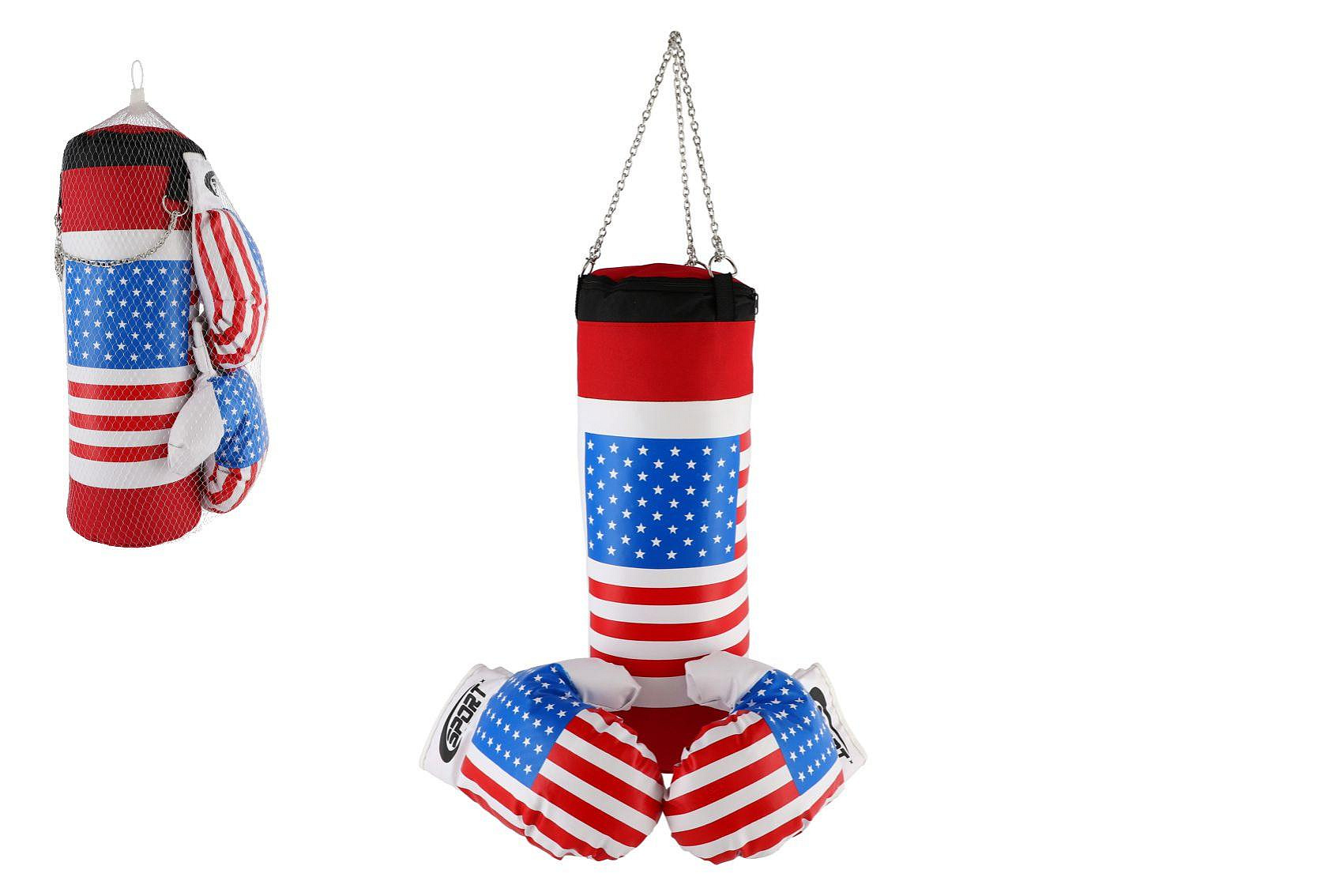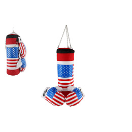 Dětská boxovací sada s motivem americké vlajky. Veďte své děti ke sportu. Jednoduchý nástroj jak zabavit unuděné děti, nebo vybít jejich energii. Určitě zažijete i spousty zábavy. Rozměry výrobku 45 x 15 x 15 cm.