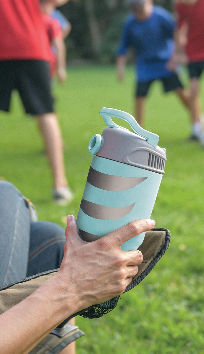 Breeze Blast is a revolutionary personal air cooler that delivers a refreshing cool breeze powered by ice. With the push of a button you can quickly and everywhere cool off in the heat! The air cooler draws in hot air, which then swirls around the frozen Blast Packs, blowing the cooled air back up and out of the directional blower. The double-walled sleeve keeps the Blast Packs frozen for reserve cold air that lasts for up to 12 hours. You can enjoy a continuous cool breeze for up to 30 minutes! You can also fill the cooler with regular ice. The portable design makes it easy to carry and you will enjoy a personalized cool breeze at work, while exercising, gardening or walking.