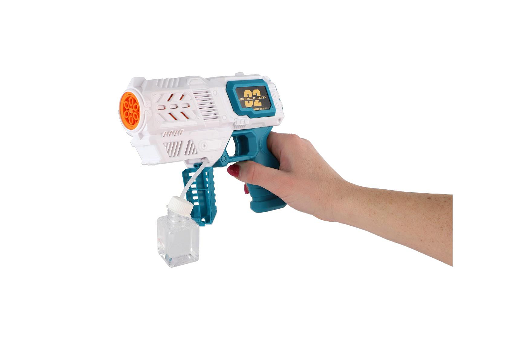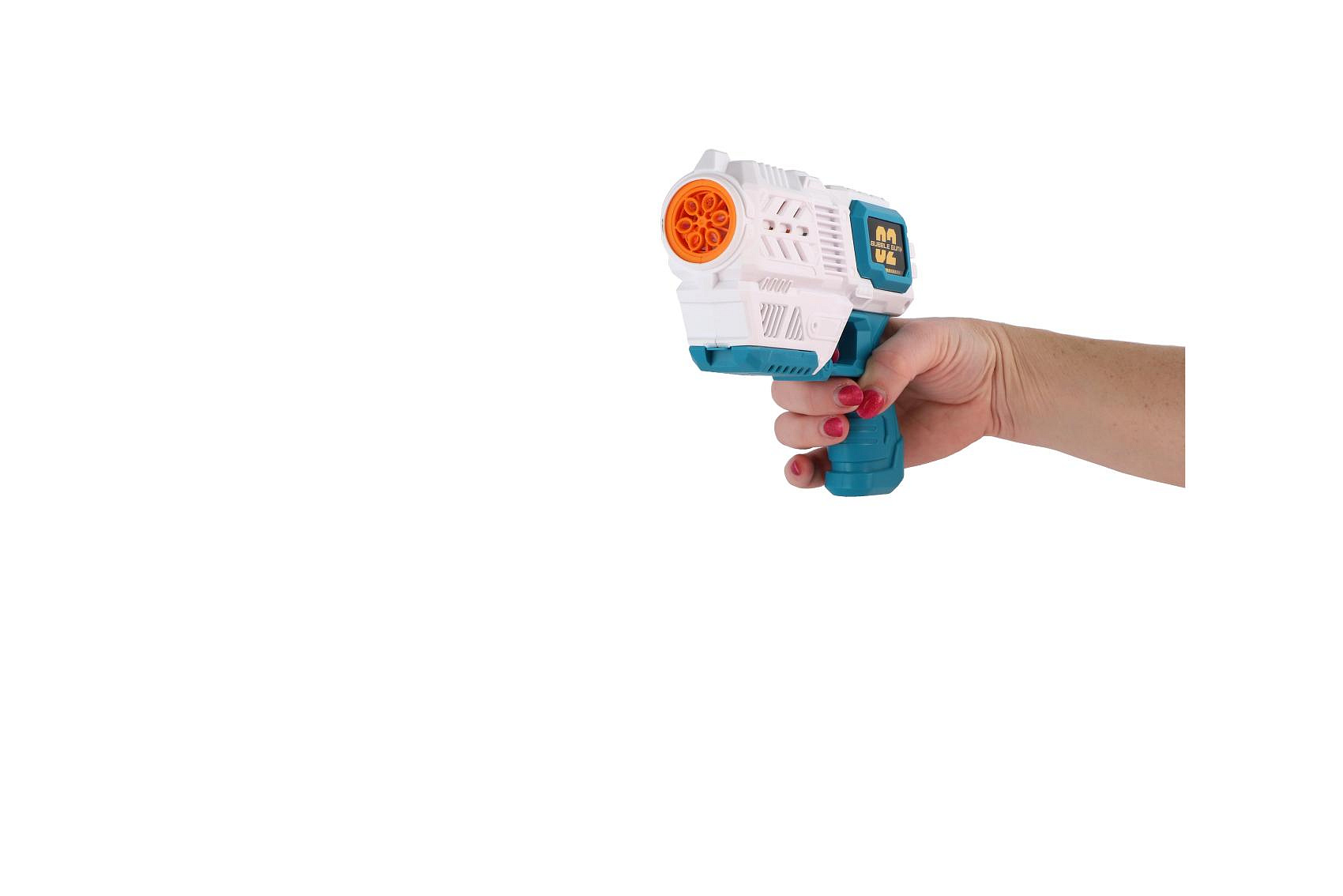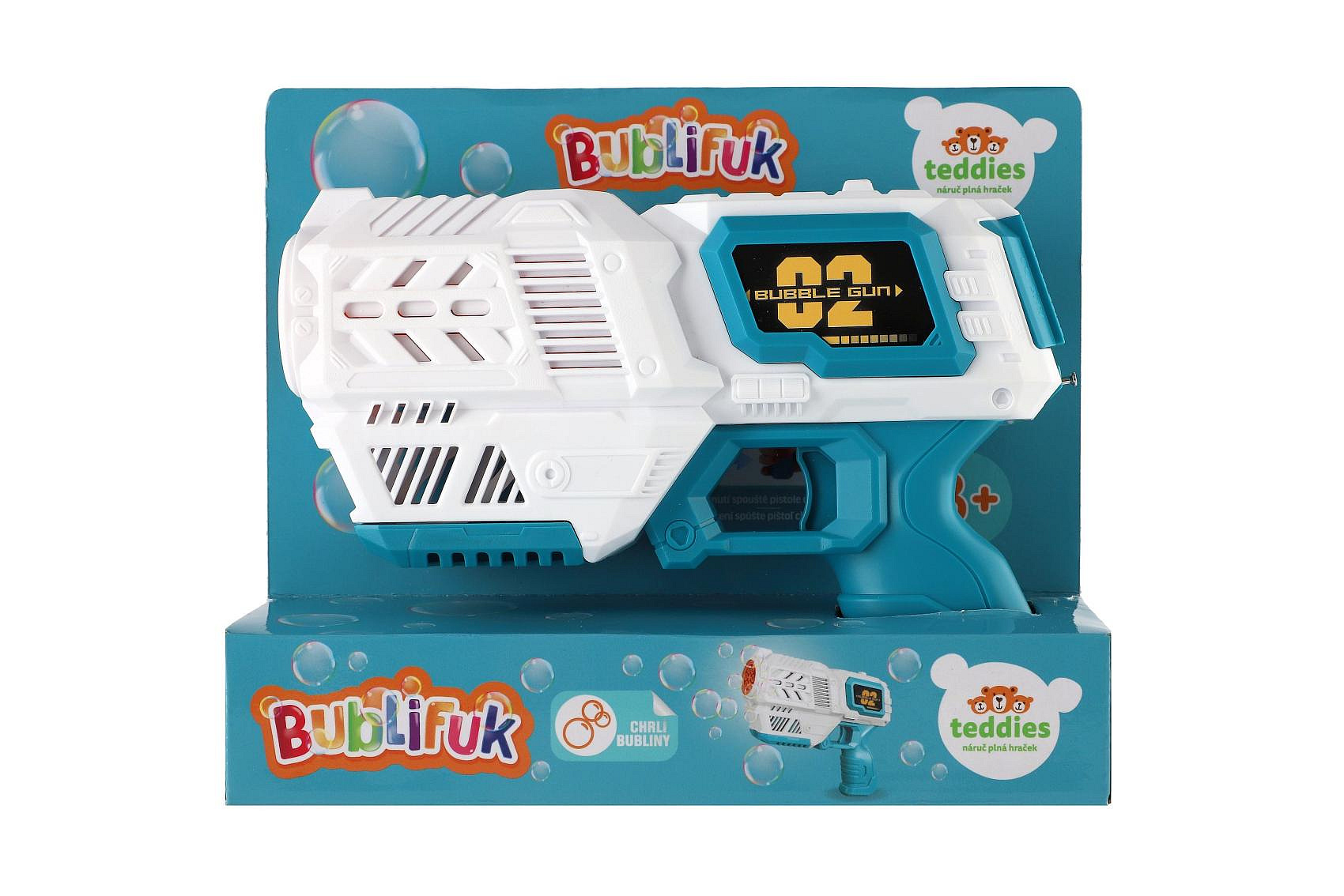 Bublifuk pistole s náplní plast 19cm na baterie v krabici 21x17x7cm