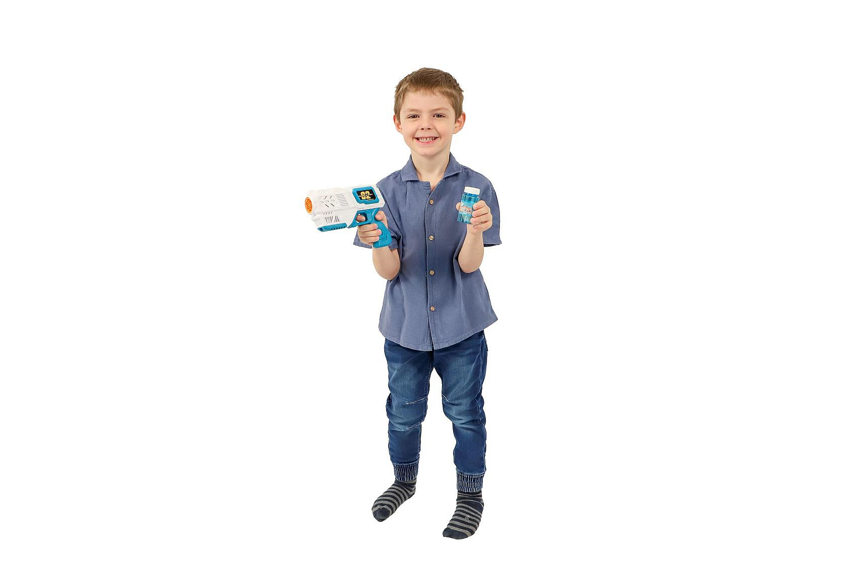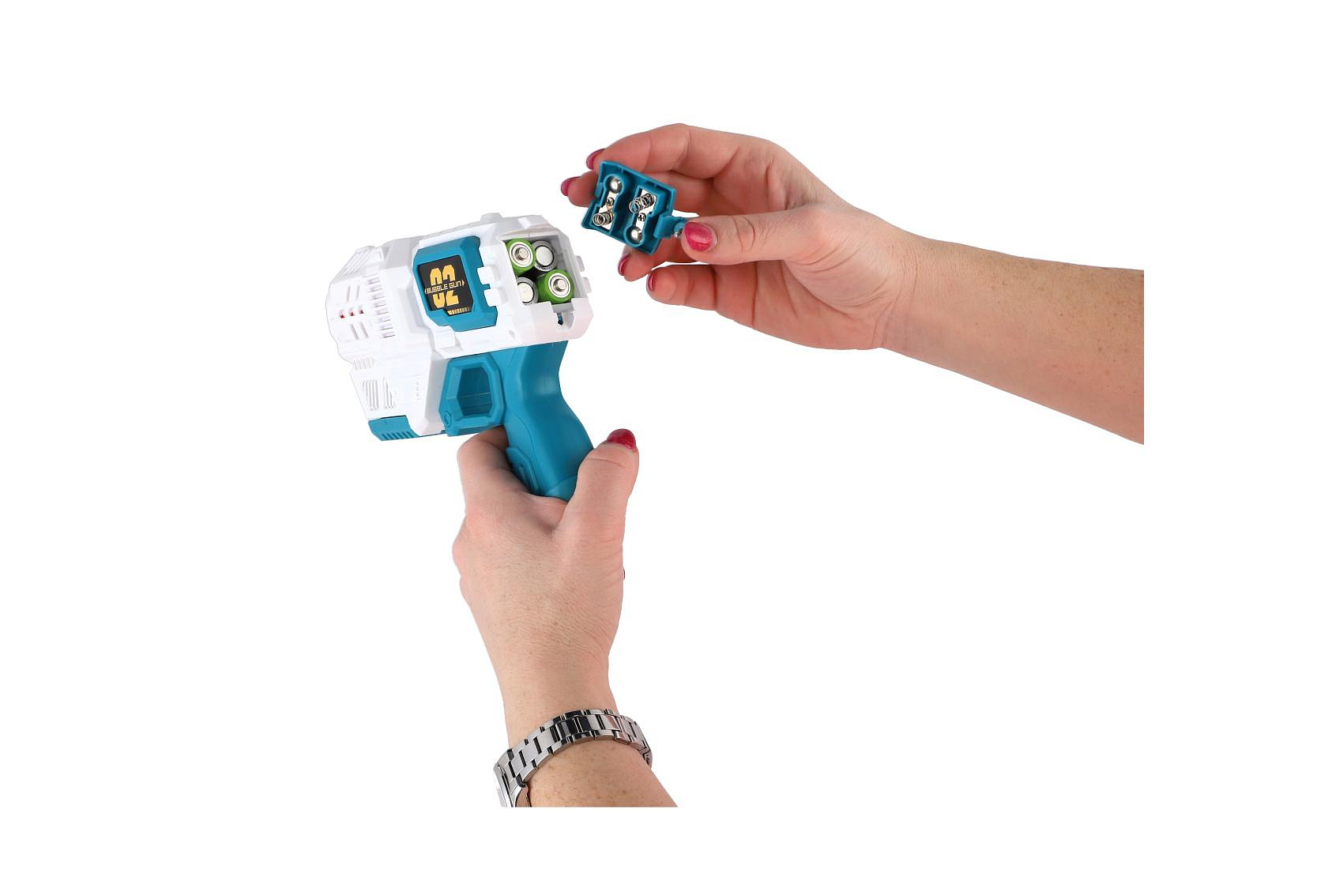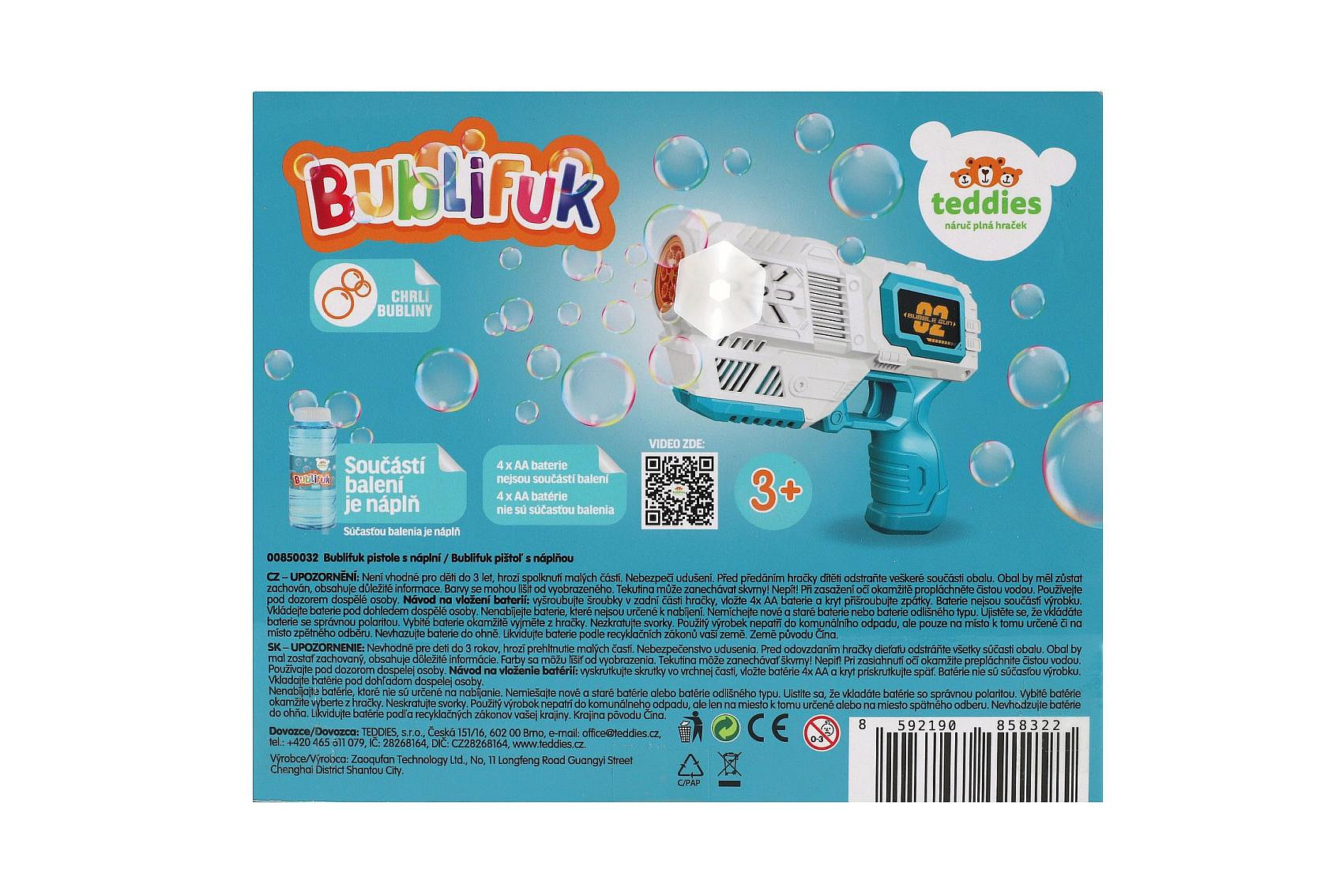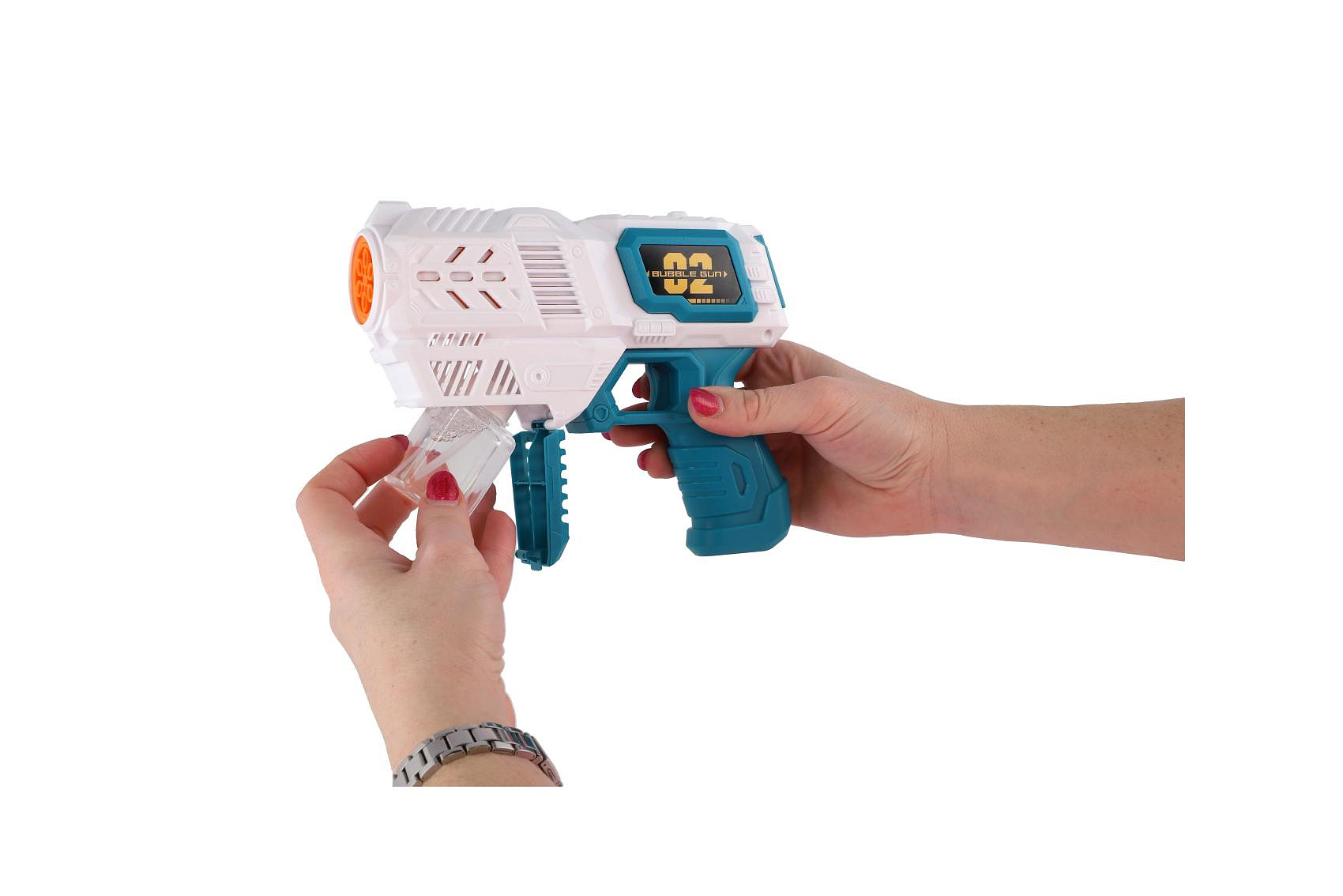 Bublifuk pistole s náplní plast 19cm na baterie v krabici 21x17x7cm