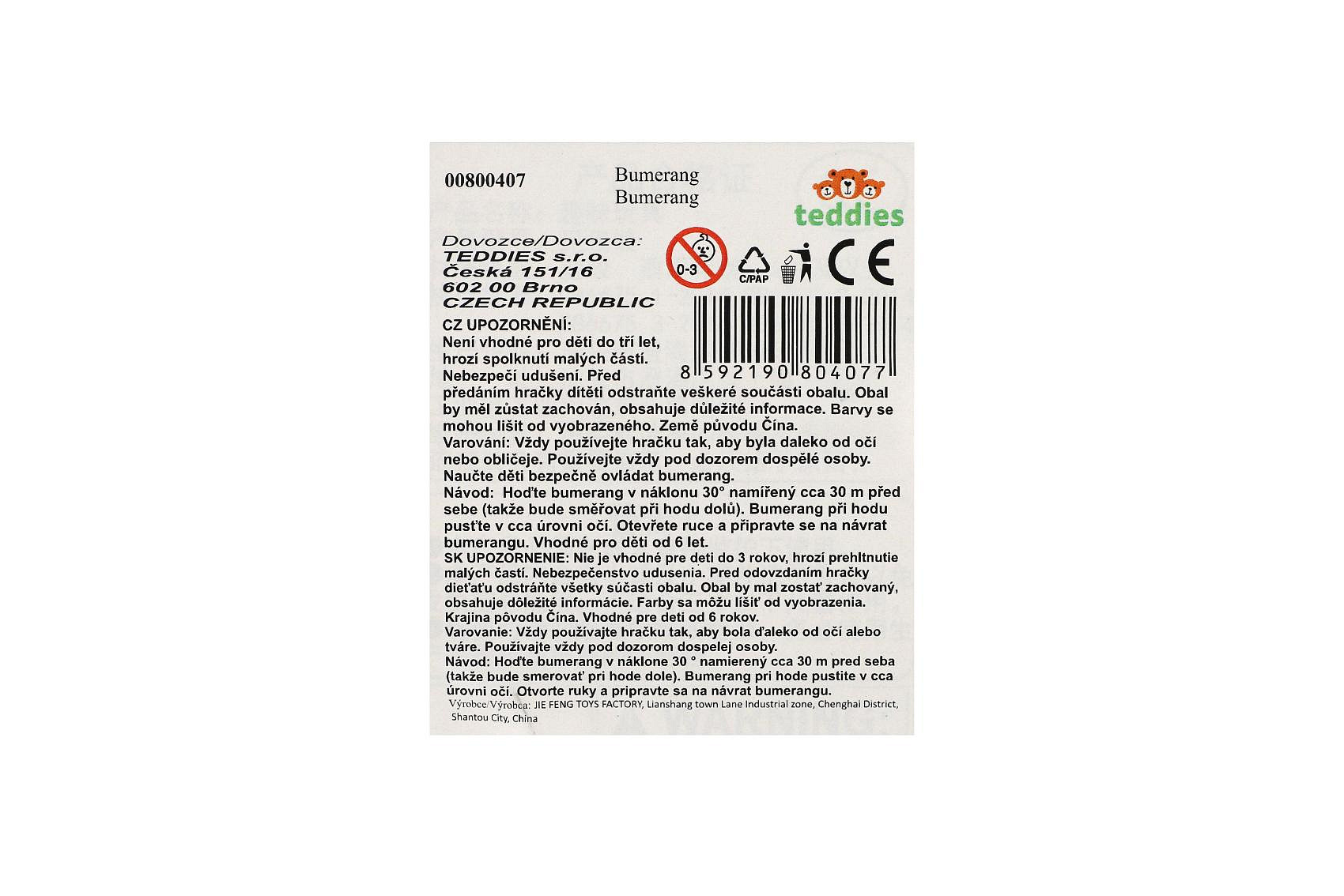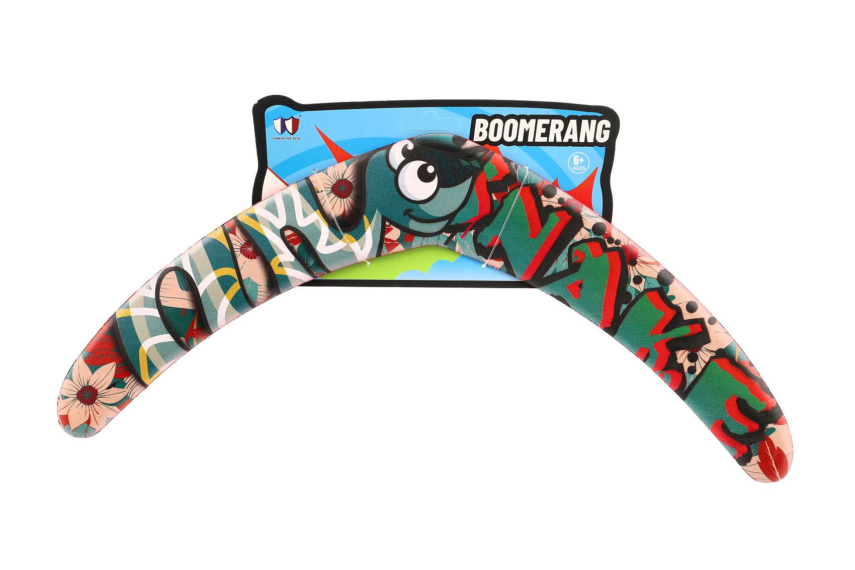Tento pěnový bumerang je ideální pro venkovní zábavu! S délkou 43 cm je snadno ovladatelný a díky měkkému pěnovému materiálu je bezpečný i pro děti. Skvělý pro trénování koordinace a obratnosti, nebo pro jednoduše zábavné hry na zahradě, v parku či na pláži. Vhodné pro děti od 6 let.