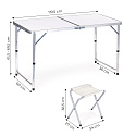 The foldable table and chairs set is perfect for shared meals, food prep, and evening games under the stars.