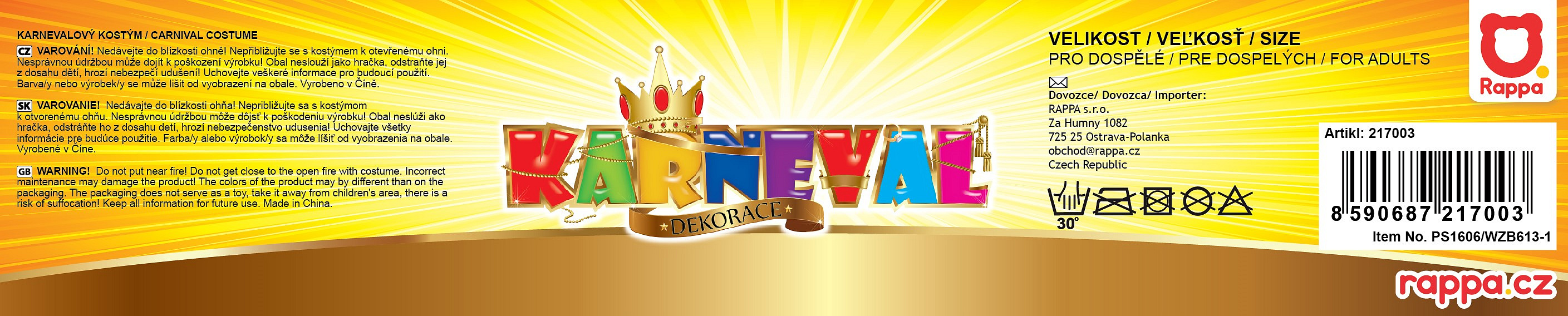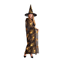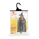 Krásný komplet na karneval nebo Halloween! Souprava zahrnuje černý plášť, který je dekorován halloweenskými motivy zlaté barvy a perfektně sladěný klobouk. Senzace! Doporučeno pro dospělé. Hůlka není součástí balení.