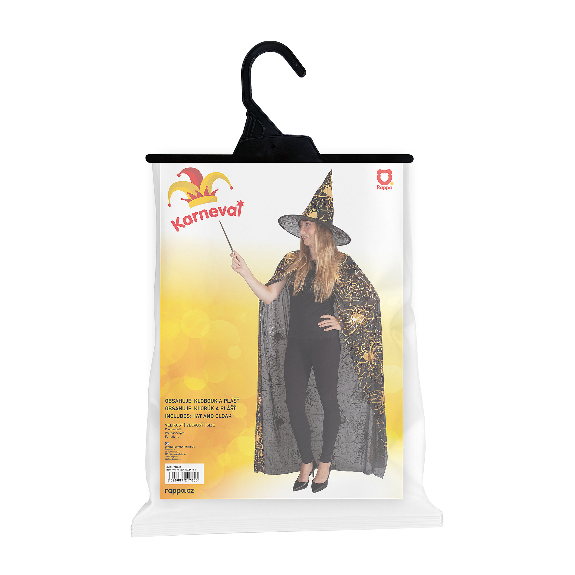 Popis Čarodějnický plášť s kloboukem a pavučinou pro dospělé