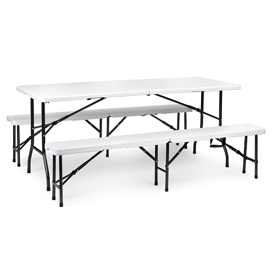 The frame elements feature a special lock that prevents accidental folding of the structure. Thanks to this, you do not have to worry about the safety of your guests – the table and benches will always remain stable.