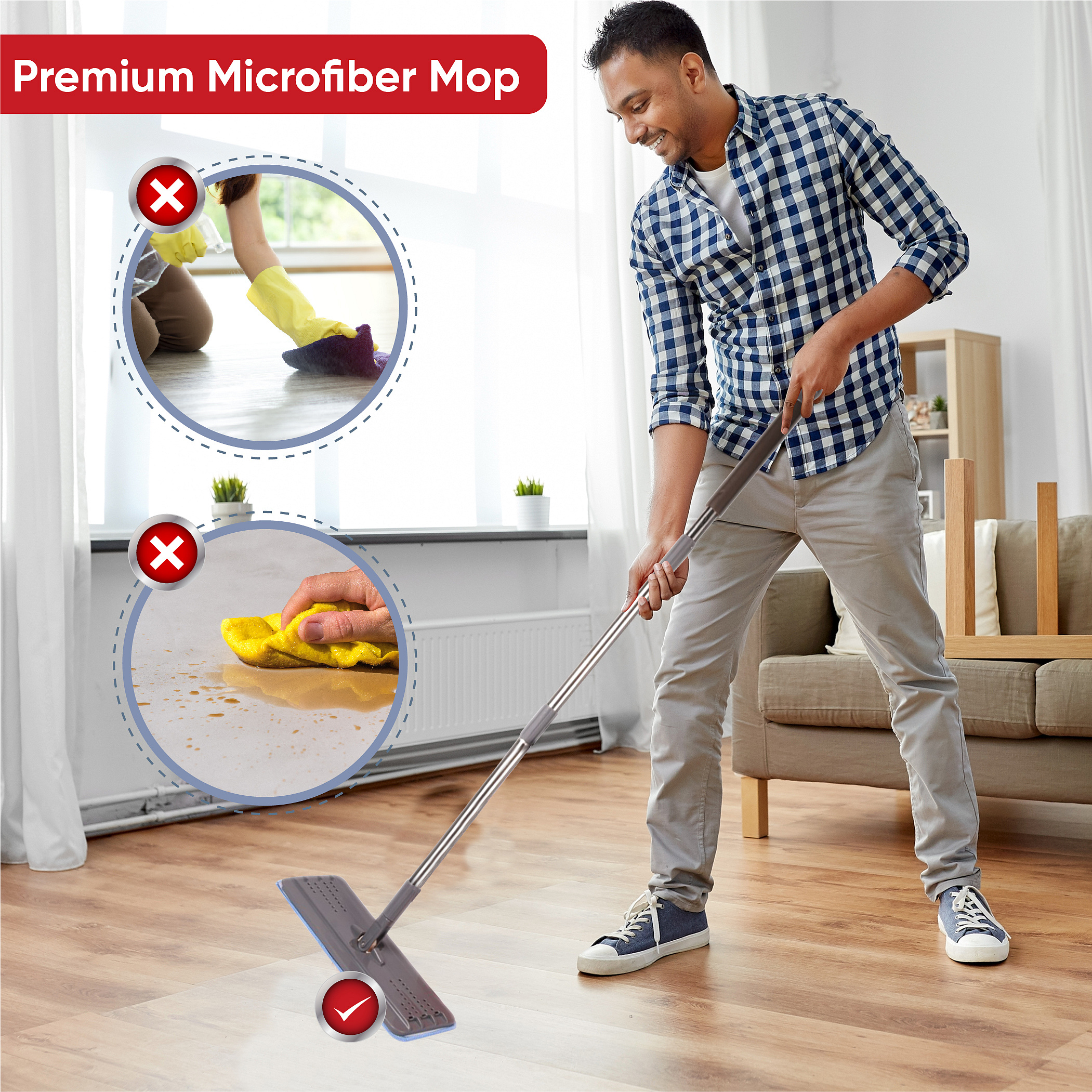 Cenocco CC-9077: Plochý mop s kbelíkem má inovativní design, který revolucionalizoval úklid jako žádný jiný. Obsahuje dvoukomorový kbelík, který umožňuje umývat a sušit hlavice mopu. Umyjte stranu, abyste naplnili mop vodou, a suchou stranu, abyste vymačkali přebytečnou vodu. Nyní můžete ovládat, jak mokrá je hlava mopu, a díky funkci páky pro vymačkávání můžete vlhkou hlavu mopu téměř vysušit. Přiložené víko provádí veškeré čištění bez použití rukou a zároveň zabraňuje stříkání vody. Hlavice mopu se otáčí o 360 stupňů, což umožňuje snadné čištění a dosáhne pod nábytek a kolem ostrých rohů, přičemž při každém otočení sbírá špínu, prach a nečistoty. Odolná mikrovláknová mopová podložka je měkká, jemná a hladká, takže můžete chránit a je vhodná pro všechny typy podlah, aniž by zanechávala jakékoli stopy a škrábance. Tato mopová podložka také absorbuje více vody než běžná mopová hlava, není snadné ji zplesnivět a je zcela pratelná v pračce. Tato nastavitelná rukojeť se přizpůsobí a upraví podle vaší výšky, aby chránila vaše záda a pas při úklidu. Tyč je vyrobena z pevné a lehké nerezové oceli a při čištění se plynule otáčí. Malý kbelík na mop je praktický pro skladování, zatímco uvnitř kbelíku drží mop.Funkce: