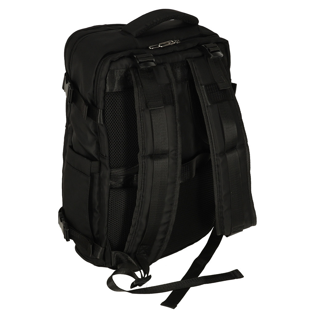 vybavení: popruhy a záda ze síťoviny, další rukojeť nahoře a gumový pásek na zadní straně batohu