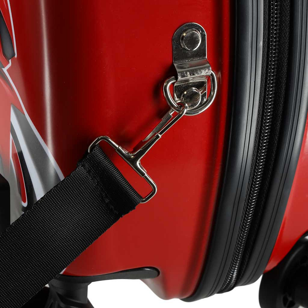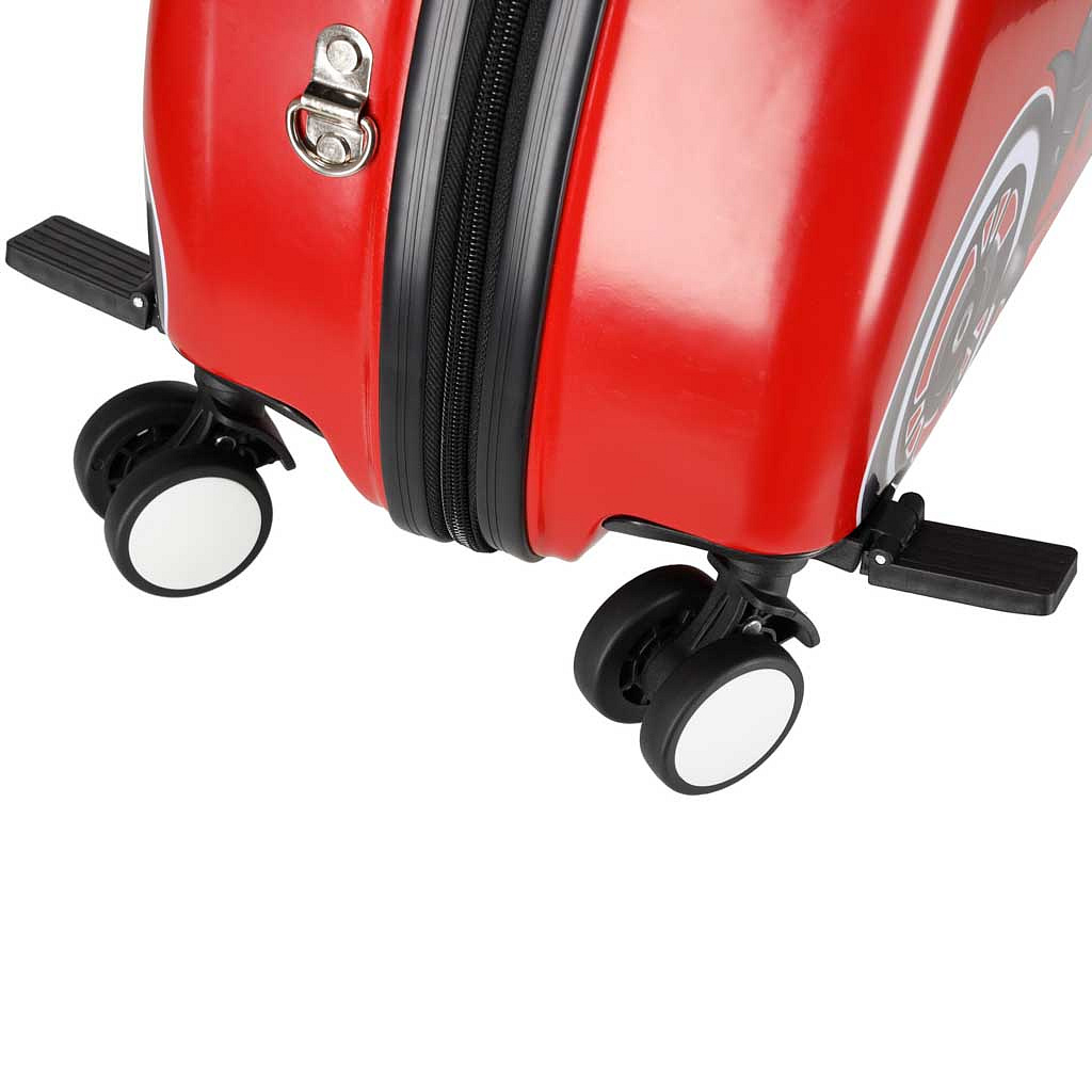 • Walizka z motorem - dynamiczny wzór dodaje energii i sprawia, że walizka wyróżnia się w tłumie i świetnie pasuje do małych fanów pojazdów