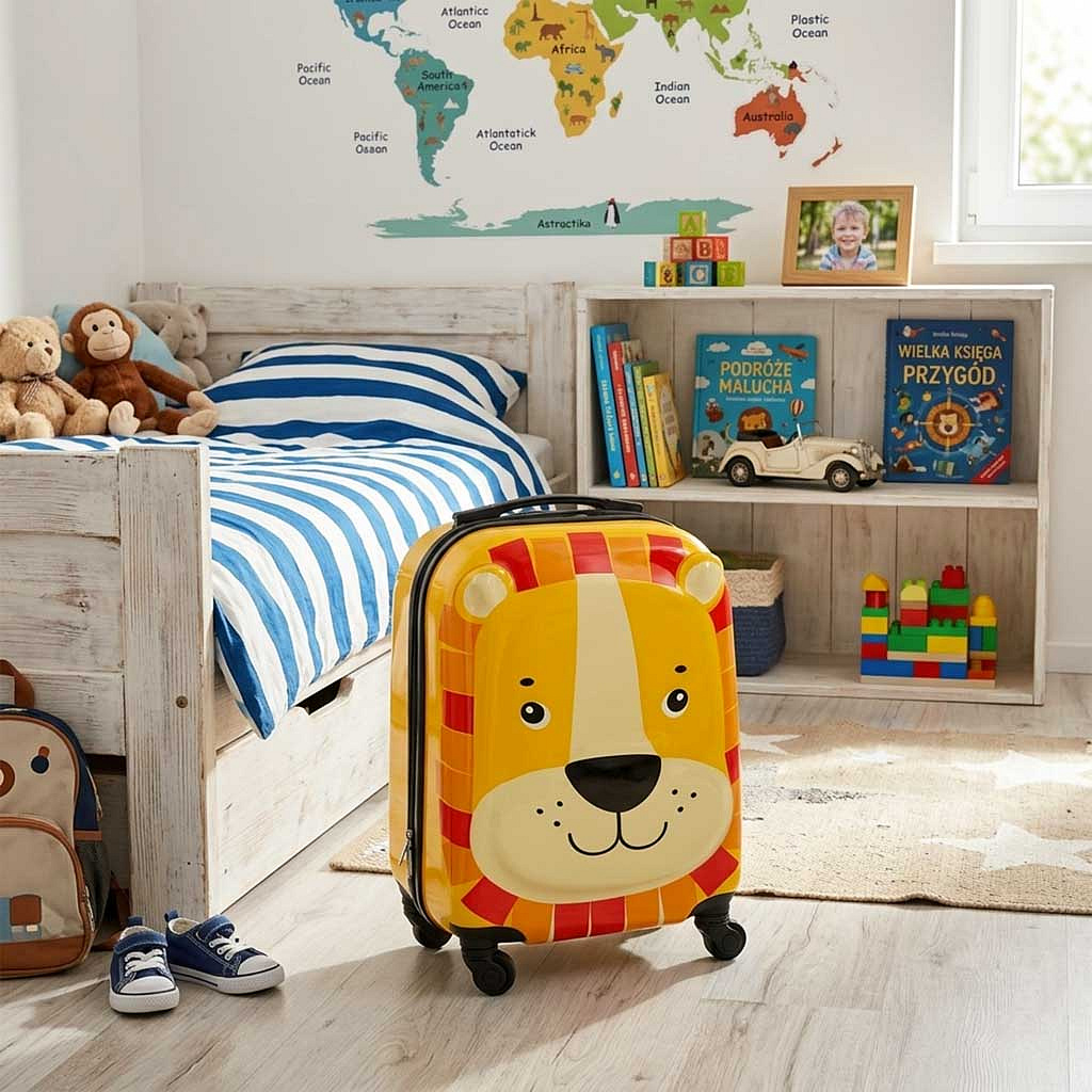 Tento slunečný cestovní kufr s veselým lvem je nejlepším společníkem každého společného výletu. Praktický kufr příruční zavazadlo bez problémů pojme oblíbené plyšáky a pevná konstrukce statečně snese náročnost každého letu. Model ten usnadňuje logistiku na letišti, nabízející dítěti vlastní, pohádkový prostor na památky a poklady.