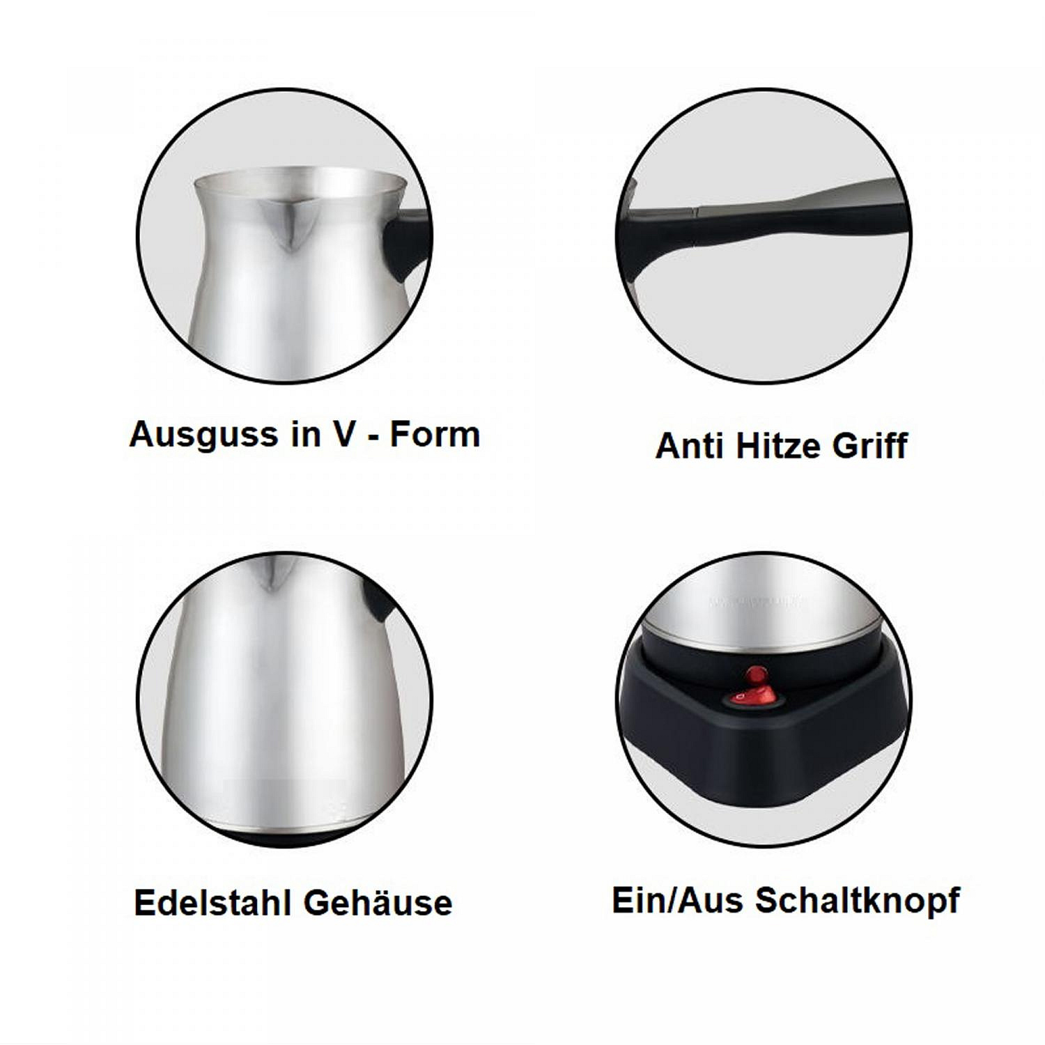 Cheffinger CF-ECMO.6:600ml elektrický nerezový turecký kávovar na espresso