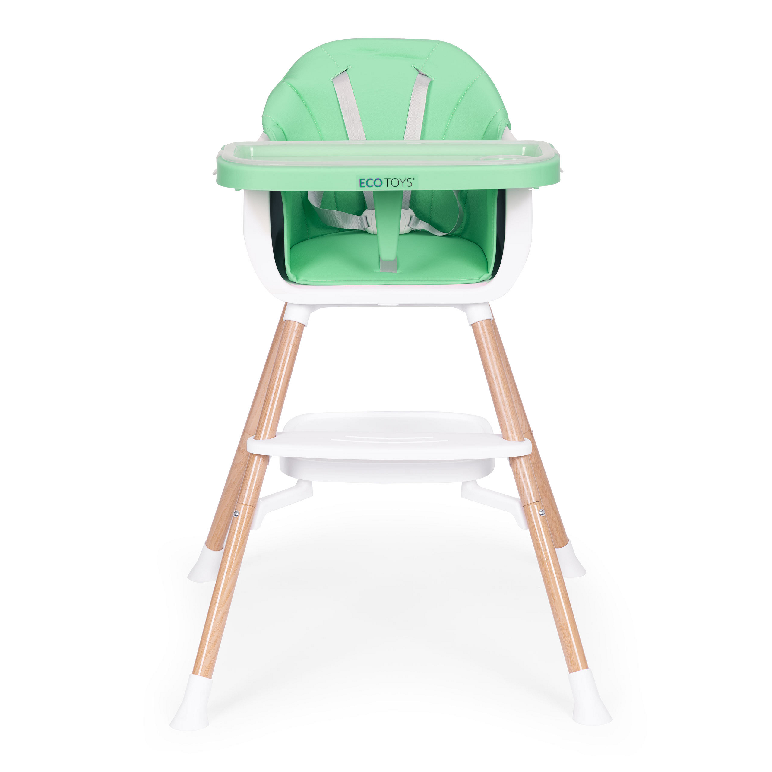 This practical high chair can be easily attached to a standard chair, providing a safe, personal space for the child at the table. After removing the legs, the seat can be attached to any household chair, with straps included in the set for added security and stability. This feature is perfect for family trips and travel.