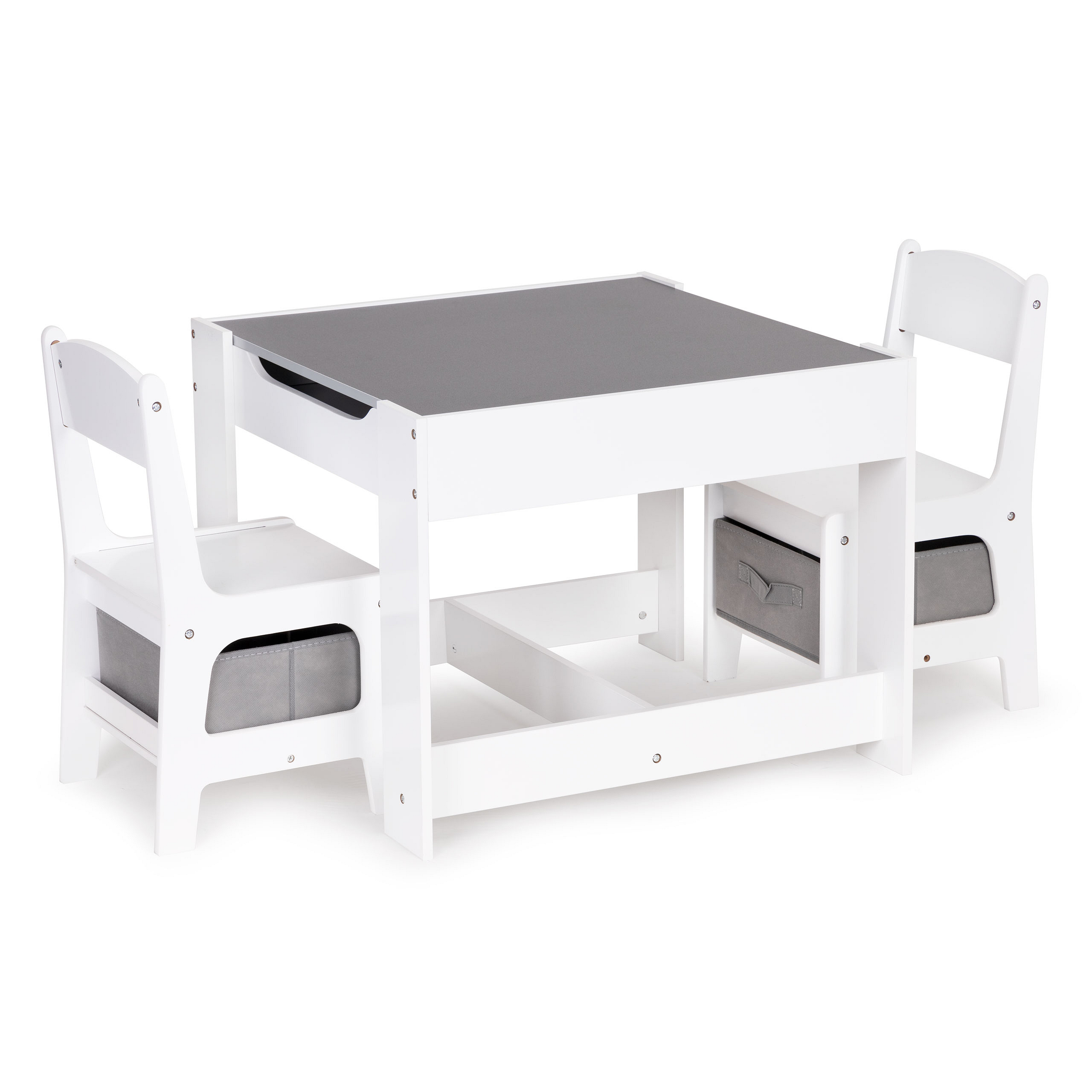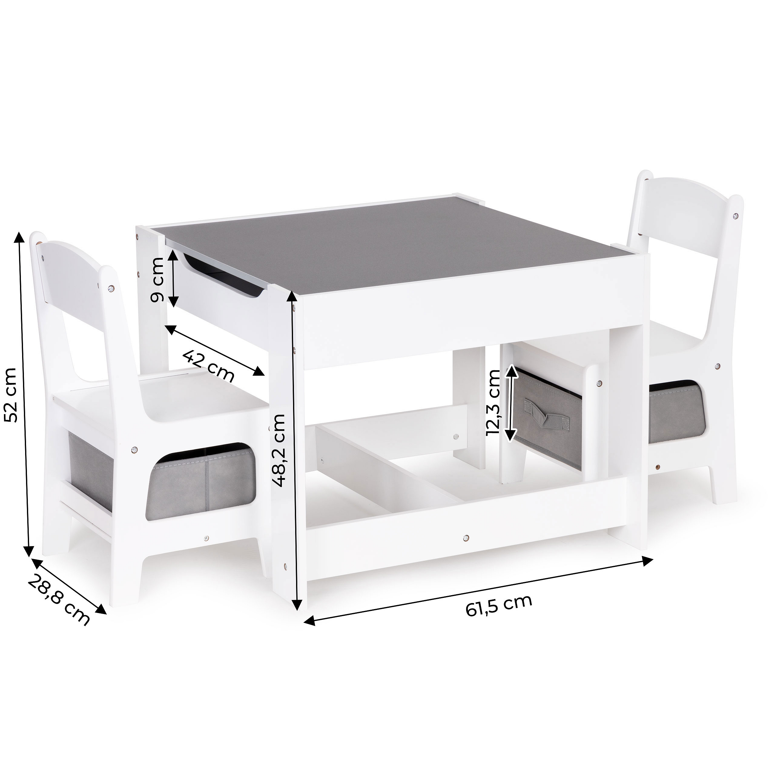 The table is perfect for arts and crafts, building block towers, and many other creative activities. After playtime, all accessories can be stored under the tabletop or in the baskets under the seats, so they are always at hand and ready to use.
