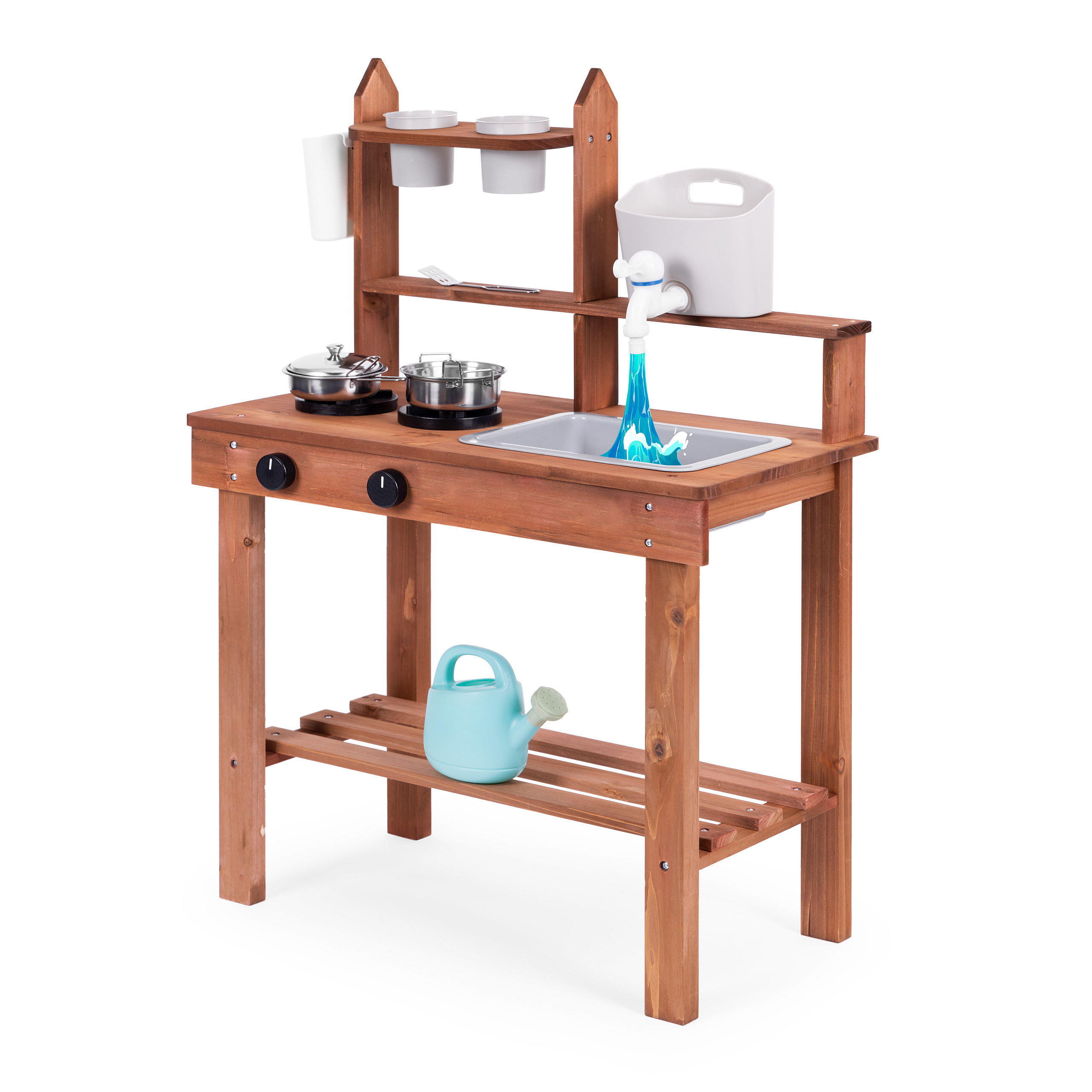 The combination of preparing meals with the possibilities offered by playing in the garden creates a unique toy - a mud kitchen. Thanks to its special construction and appropriately selected materials (fir wood), this kitchen model is suitable for play not only in the children's room but also in the garden or on the terrace. Thanks to this, children can create various dishes from sand, mud, pebbles and everything they find around, this form of play will make the mud kitchen quickly become a favorite toy.