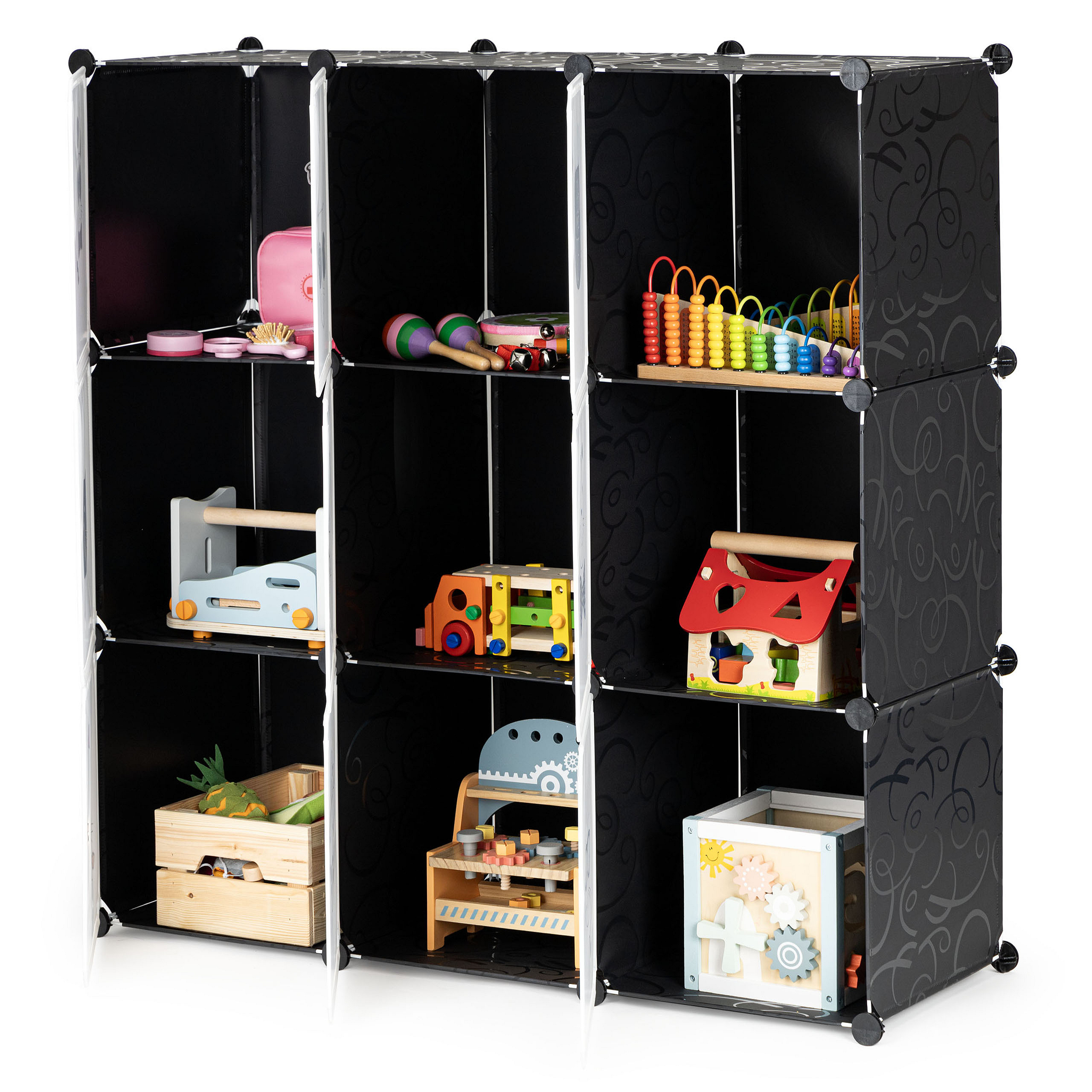 Children's storage cabinet with 9 shelves