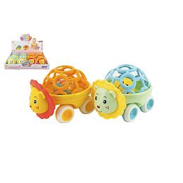 Chrastítko autíčko zvířátko plast 14cm 2 barvy na volný chod 8ks v boxu 3m+