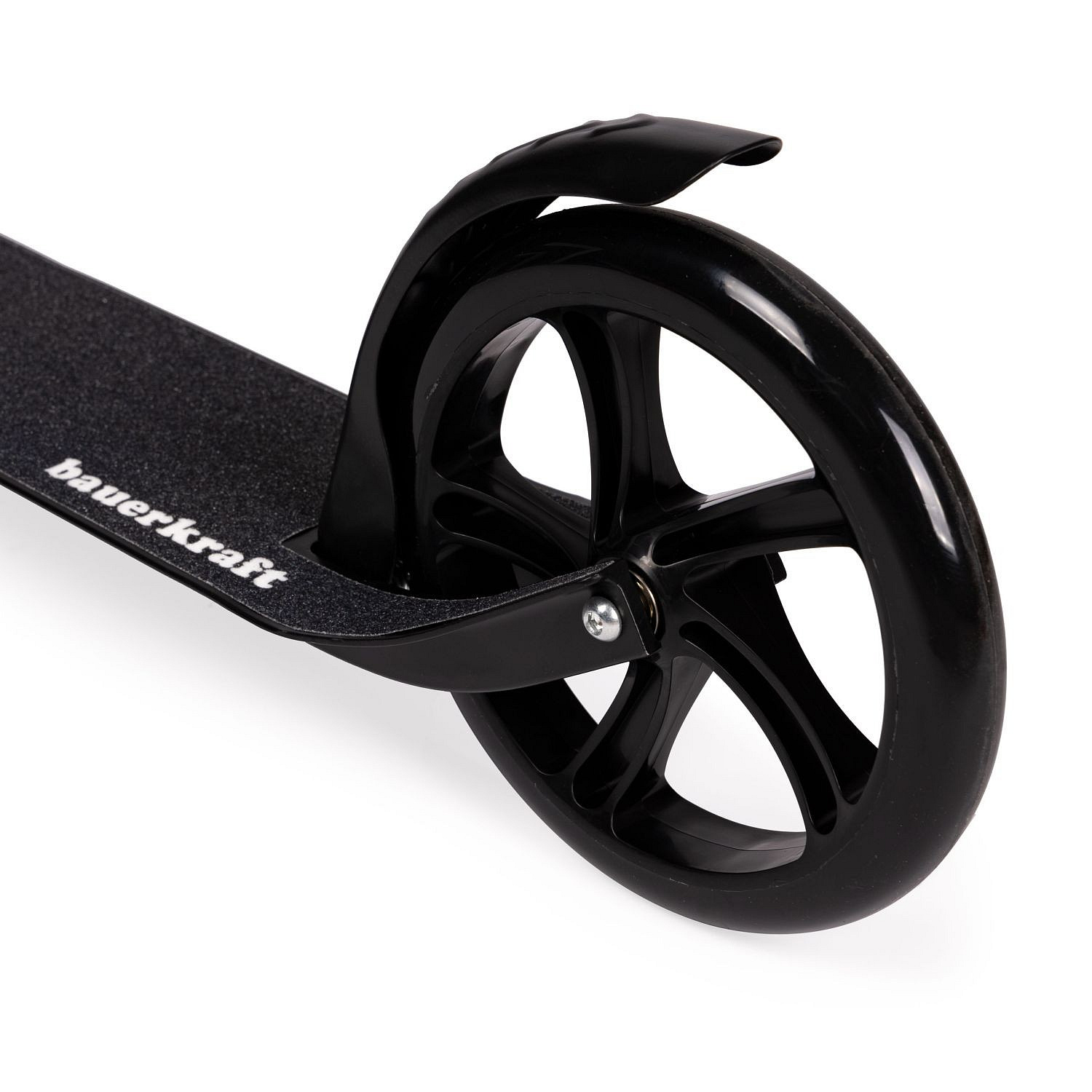 The city scooter is a great choice for commuting to school or recreational rides around the city. Thanks to the large wheels and the suspension system, it performs well on asphalt paths, sidewalks, and bike lanes. The front spring shock absorber reduces vibrations, improving riding comfort even on uneven surfaces. A practical kickstand allows you to safely park the scooter anywhere. The rear wheel with mudguard not only improves the look but also protects clothing from splashes. Trust a proven design that supports your child’s daily activity in a safe way.