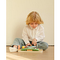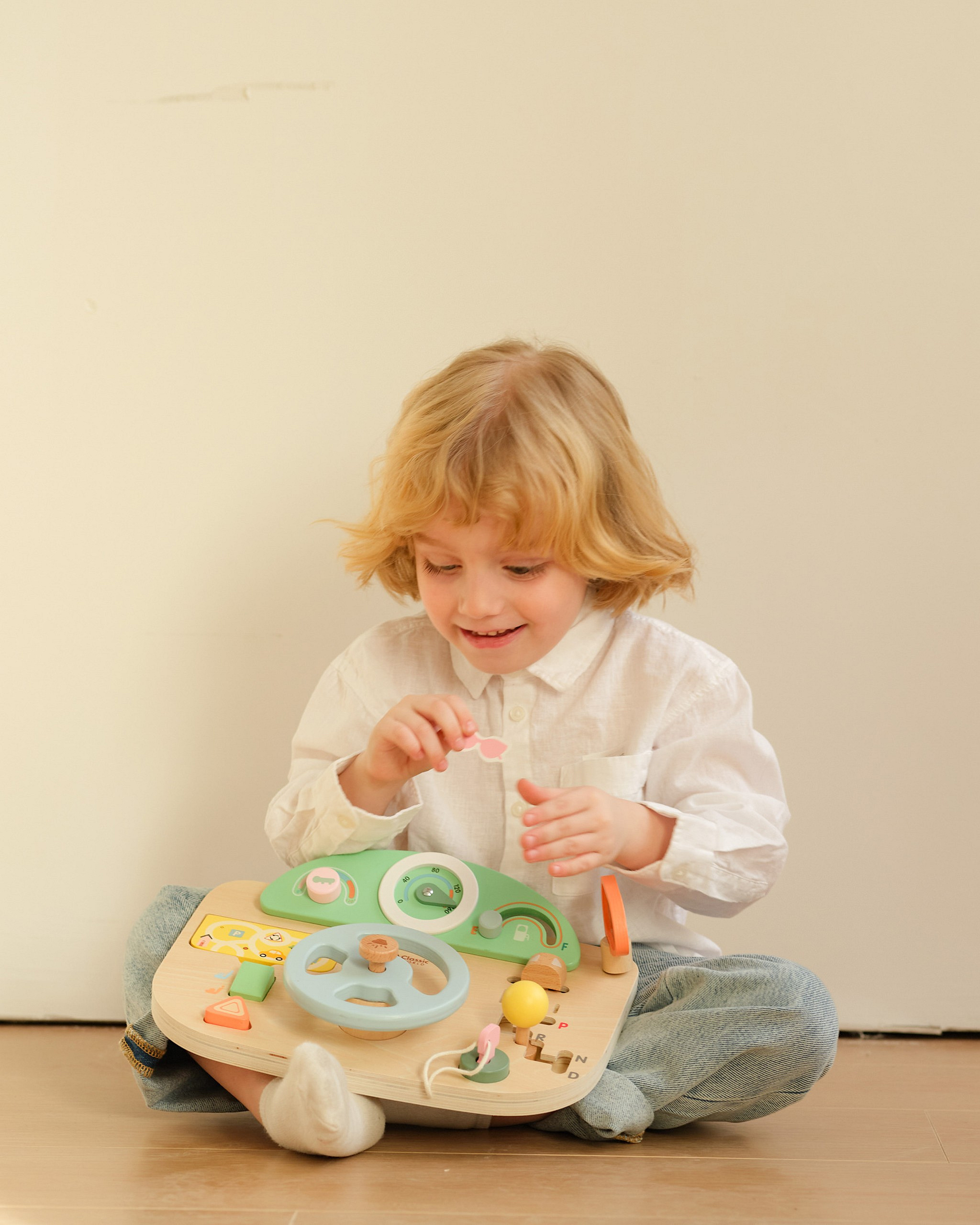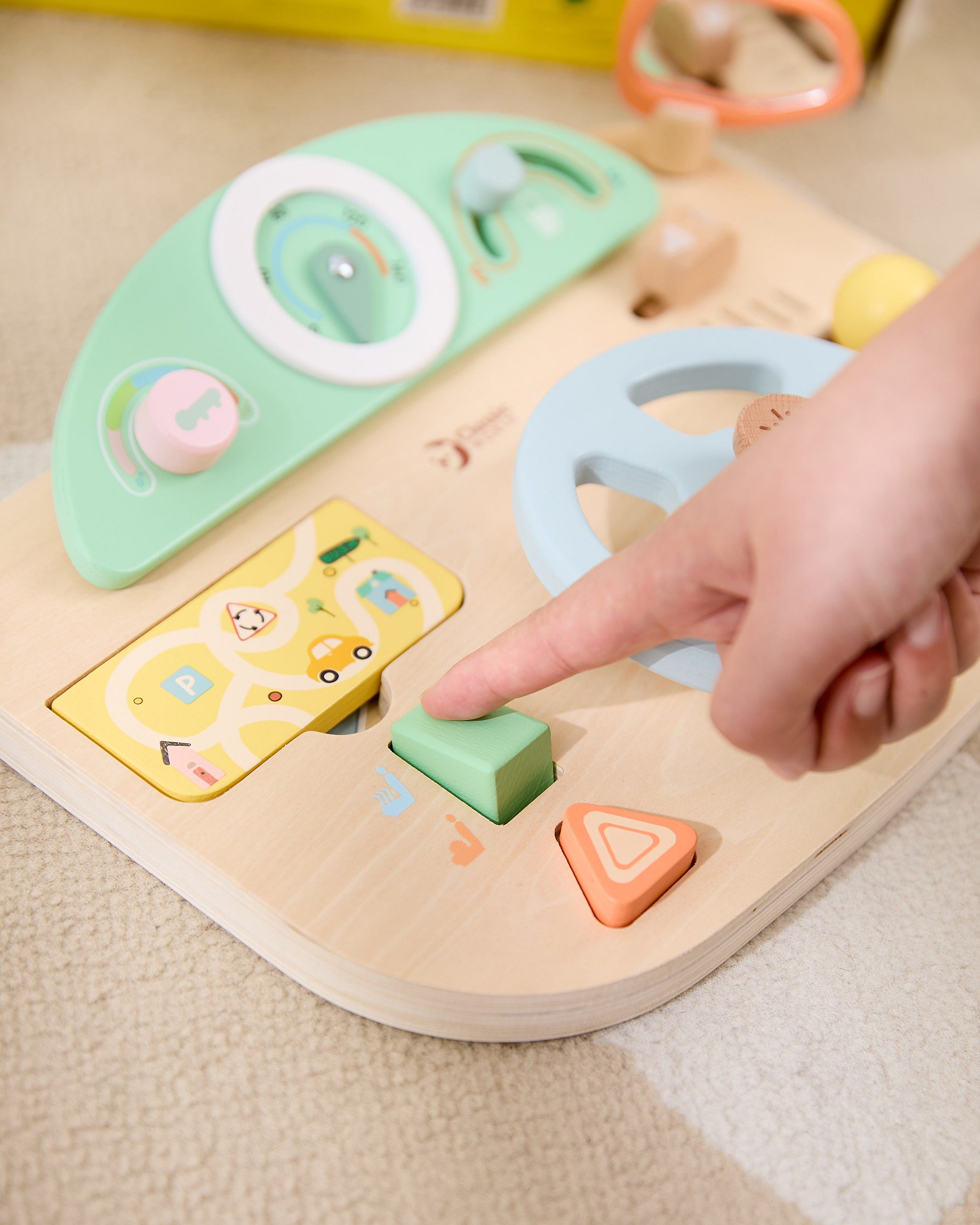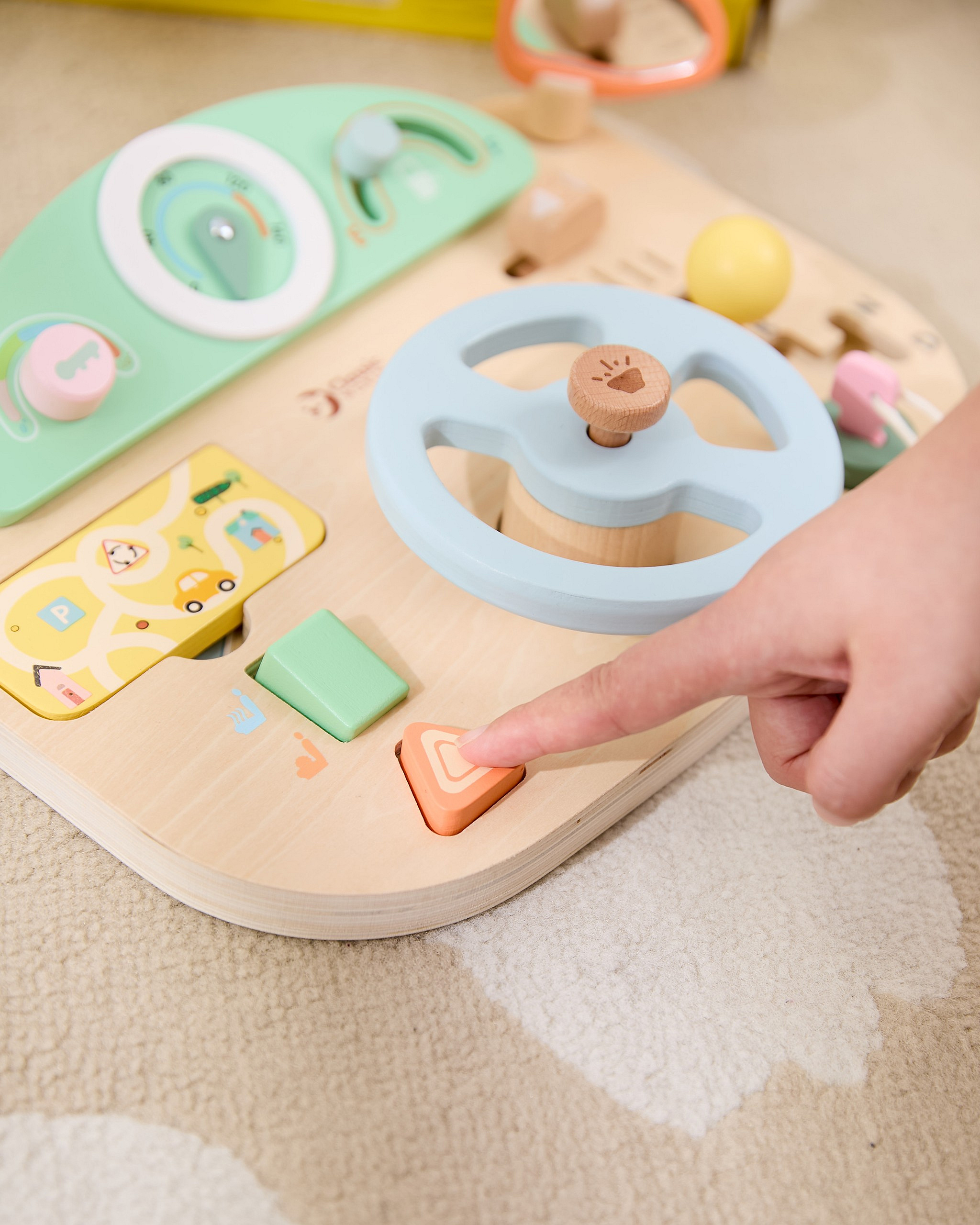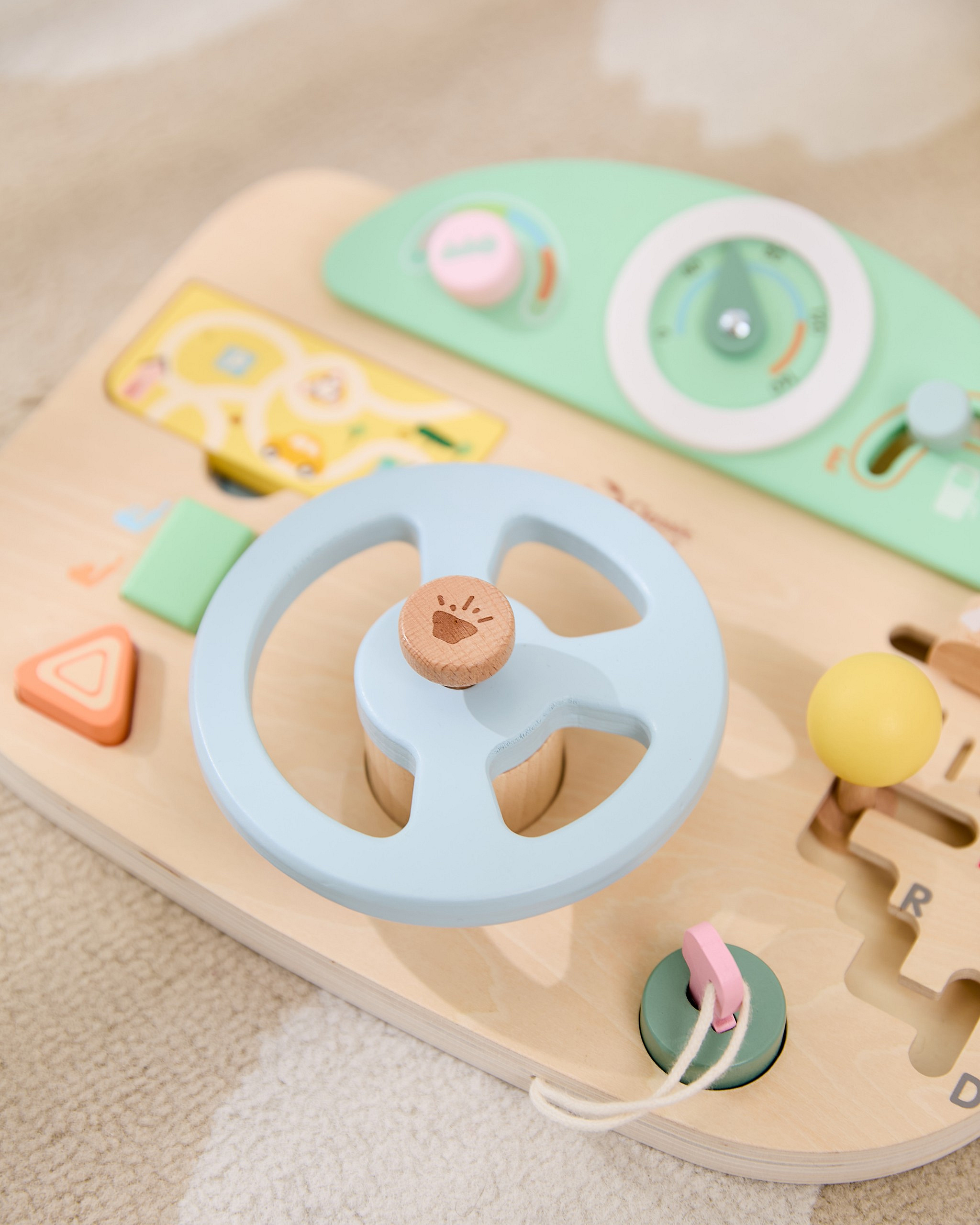 Wielofunkcyjna Kierownica Motoryczna od marki Classic World to wyjątkowa zabawka edukacyjna, która pozwoli Twojemu dziecku poczuć się jak prawdziwy kierowca. Ta innowacyjna tablica manipulacyjna w kształcie kokpitu samochodu została zaprojektowana z myślą o realistycznym odwzorowaniu doświadczeń z jazdy, jednocześnie dbając o rozwój umiejętności manualnych malucha. Wykonana z wysokiej jakości naturalnego drewna, oferuje szereg interaktywnych funkcji, które zajmą dziecko na długie godziny. Zabawka wyposażona jest w ruchomą kierownicę, drążek zmiany biegów oraz liczne pokrętła i przyciski, które symulują obsługę prawdziwego auta. Dziecko może "uruchomić" pojazd za pomocą kluczyka w stacyjce, używać klaksonu wydającego dźwięk oraz obserwować drogę w lusterku. To idealne połączenie zabawy w odgrywanie ról z treningiem małej motoryki.