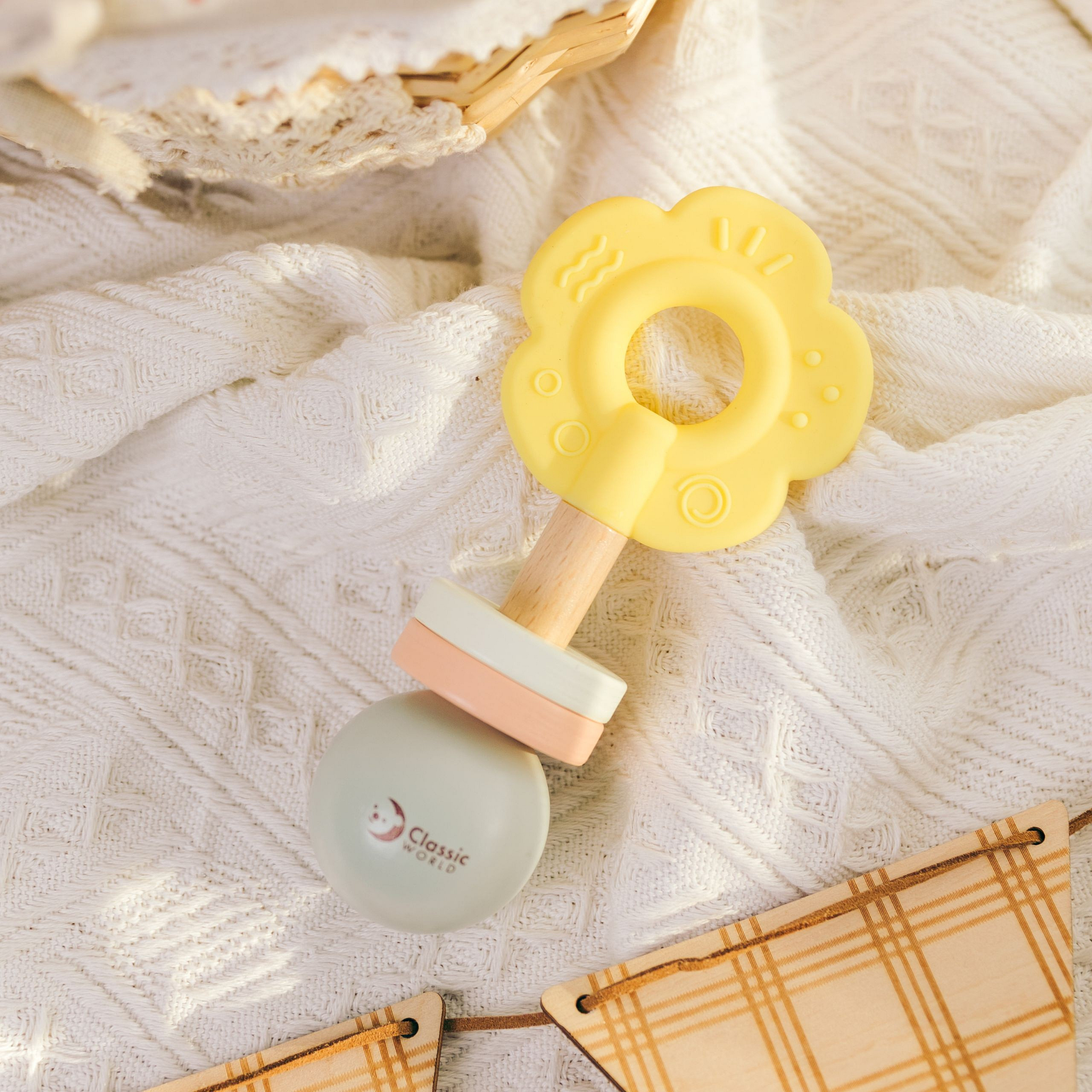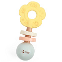 Urocza grzechotka w kształcie kwiatka zaprojektowana została z myślą o najmłodszych dzieciach. Delikatne, pastelowe kolory przyciągają uwagę maluszka, a przyjemna w dotyku powierzchnia i odpowiedni rozmiar sprawiają, że łatwo ją chwycić i potrząsać. Zabawka została stworzona z bezpiecznych materiałów – drewna i silikonu – dzięki czemu nadaje się dla dzieci już od pierwszych dni życia.