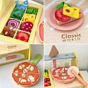 Drewniany piec do pizzy od marki Classic World to kompletny zestaw do zabawy w restaurację, stworzony z myślą o małych kucharzach. Zestaw zawiera ruchome dodatki i elementy do komponowania pizzy, co angażuje dziecko w kreatywne odgrywanie ról. Produkt wykonano z gładkiego drewna, pomalowanego bezpiecznymi, nietoksycznymi farbami — zabawka jest trwała i przyjazna maluchom.