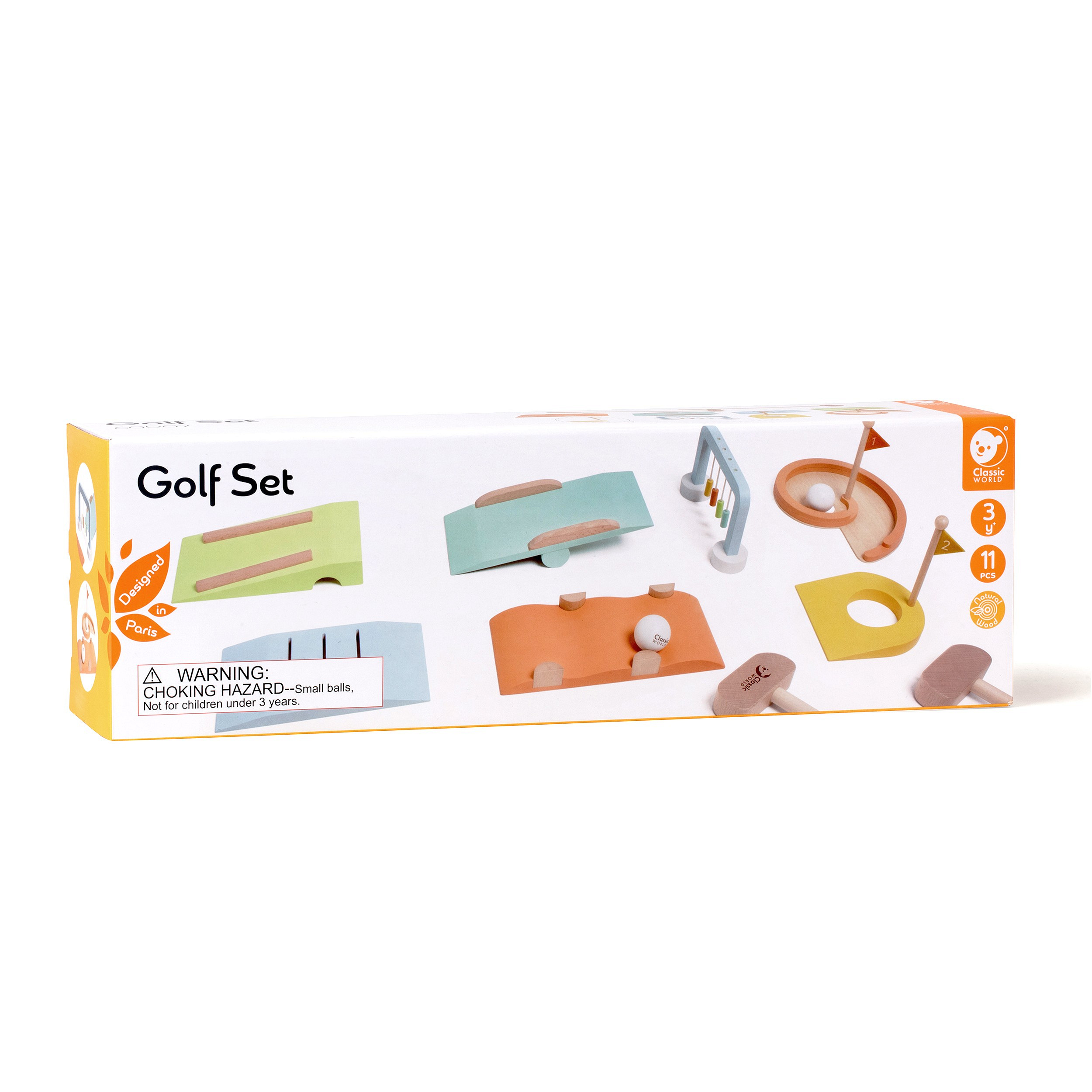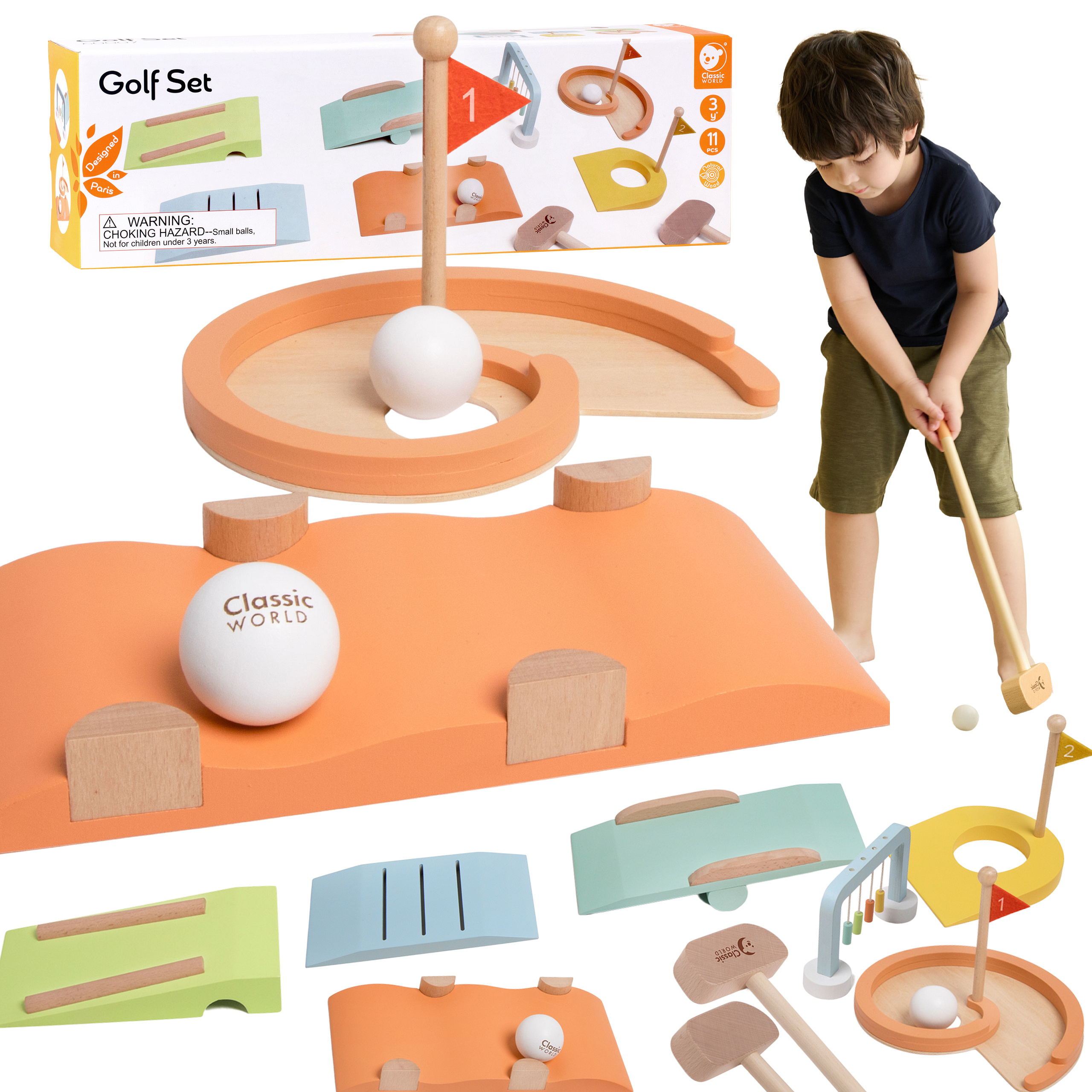 Odkryjcie pasjonujący świat golfa w domowym zaciszu lub ogrodzie dzięki marce Classic World! Wykonany z ekologicznego, trwałego drewna, jest w 100% bezpieczny i odporny na zmienne warunki pogodowe, co gwarantuje długą żywotność. Ta gra zręcznościowa dla dzieci 3+ zapewnia godziny aktywnej, pomysłowej zabawy, idealnej dla całej rodziny. Mini golf doskonale ćwiczy precyzję, zręczność oraz kluczową koordynację ręka-oko. Dzięki 5 unikalnym przeszkodom i łatwej do rozstawienia konstrukcji, każda runda staje się wyjątkowym i rozwijającym wyzwaniem.