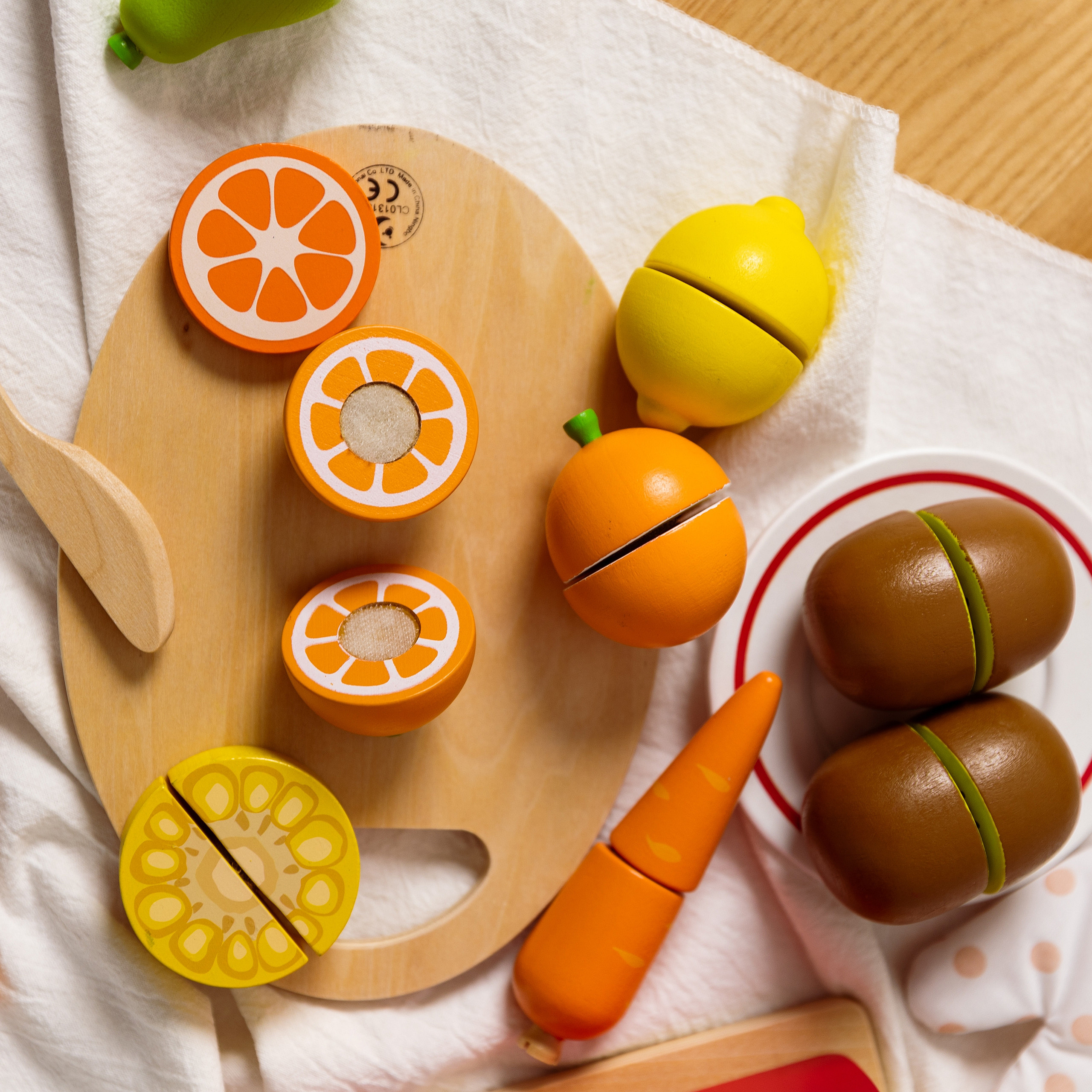 Drewniane Owoce do krojenia na tacy cenionego producenta zabawek Classic World dla dzieci od 3 roku życia idealne do przedszkola, jak i do domu. Dziecko będzie mogło wykonywać czynności z życia codziennego. Zabawka może być wykorzystywana również jako układanka. Zestaw pozwoli na rozwijanie się różnych umiejętności przydatnych w późniejszym życiu. Zabawka jest wielofunkcyjna dzięki czemu dziecko może bawić się na różne sposoby. Nasza pociecha wcięli się w role kasjera na własnym straganie albo zabawi w dom. Wszystko zależy od kreatywności dziecka.