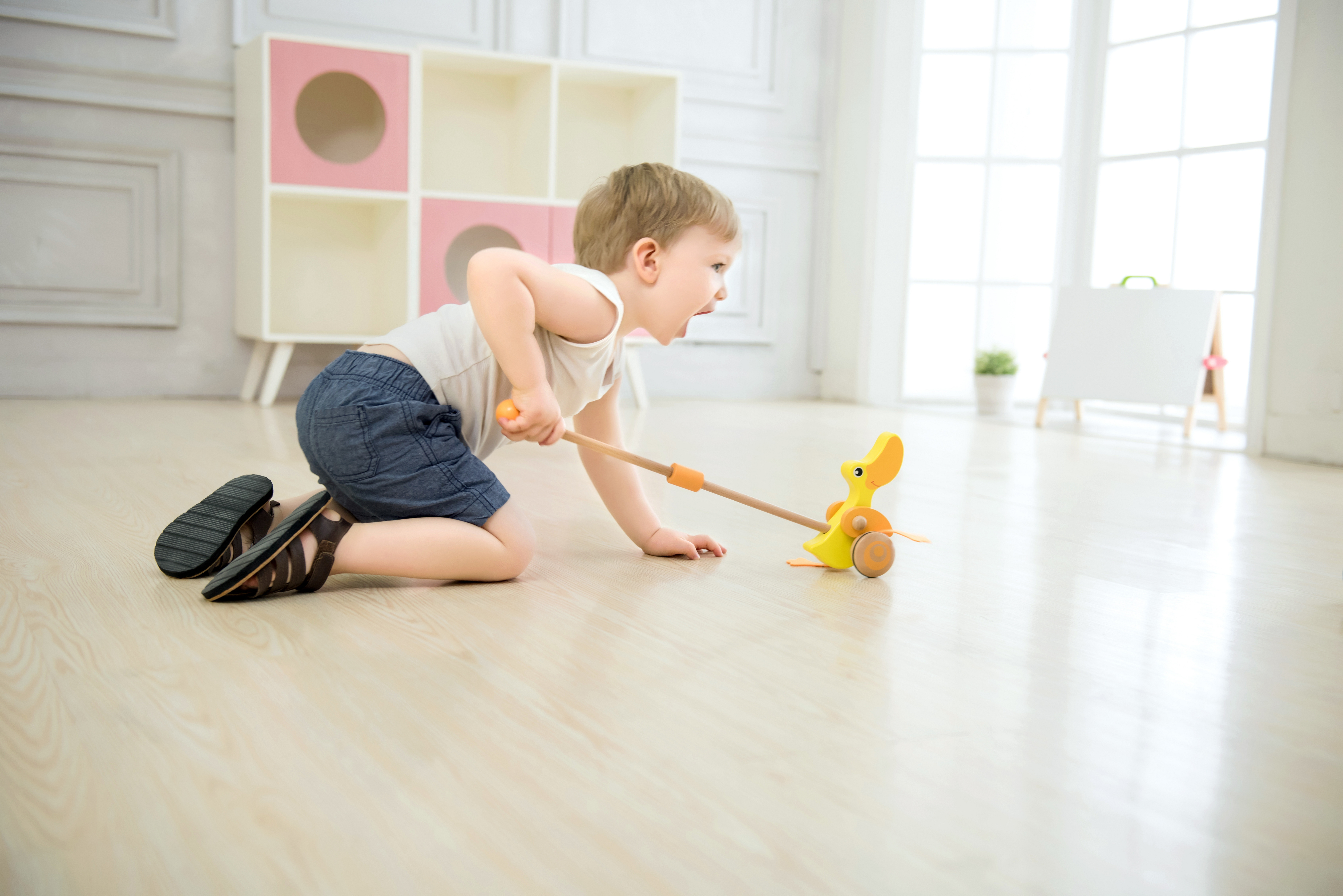 Drewniana zabawka do pchania marki Classic World. Dzieci mogą ćwiczyć chodzenie, prowadząc przed sobą ulubioną zabawkę. Podczas jeżdżenia, kaczuszka klapie płetwami, powodując u maluszka śmiech i radość. Kaczuszka to bestsellerowa zabawka marki Classic World.