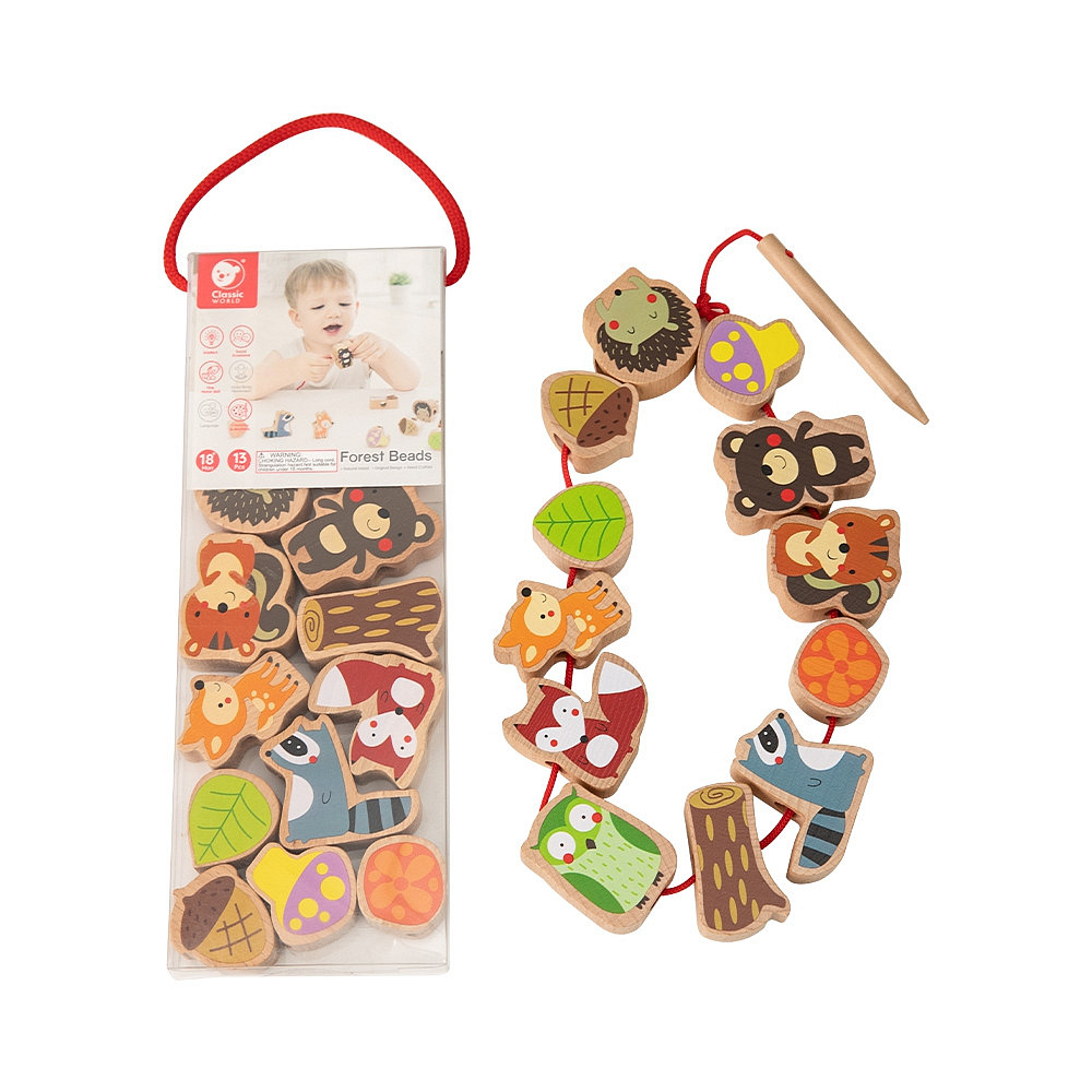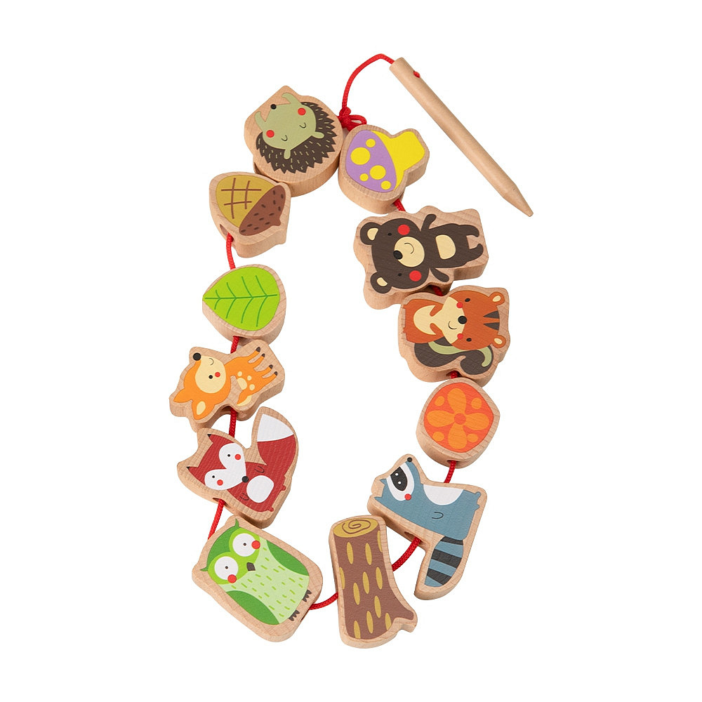 Nawlekanka drewniana od marki Classic World to edukacyjna zabawka dla dzieci powyżej 18. miesiąca życia. Składa się z 13 elementów w kształcie leśnych zwierząt i roślin, które maluch może nawlekać na sznurek za pomocą drewnianej igły. Wykonana z naturalnego drewna, gwarantuje bezpieczeństwo i trwałość. Idealna do rozwijania zdolności manualnych i koordynacji wzrokowo-ruchowej. Dzięki atrakcyjnym kolorom i kształtom, zabawka przyciąga uwagę i angażuje dziecko w kreatywną zabawę.