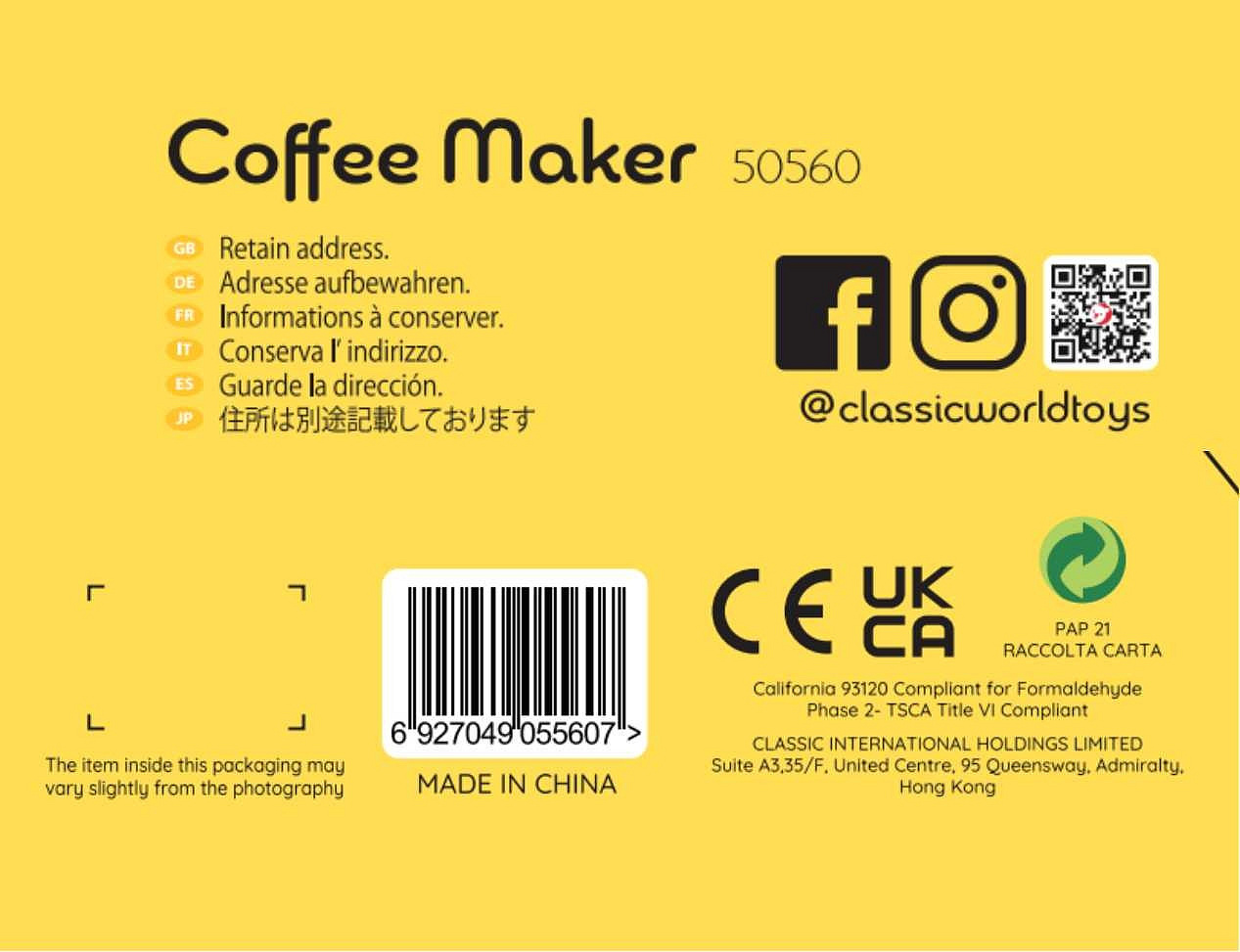 Przenieś dzieci do fascynującego świata małego baristy dzięki zestawowi od Classic World. Ten uroczy ekspres do kawy z naturalnego drewna to doskonały sposób na rozwijanie wyobraźni i umiejętności manualnych maluchów. Z ruchomymi elementami i realistycznymi detalami, zabawa staje się jeszcze bardziej angażująca. Zachwyci zarówno chłopców, jak i dziewczynki. Bezpieczny, estetyczny i edukacyjny – to prezent, który łączy zabawę z nauką.