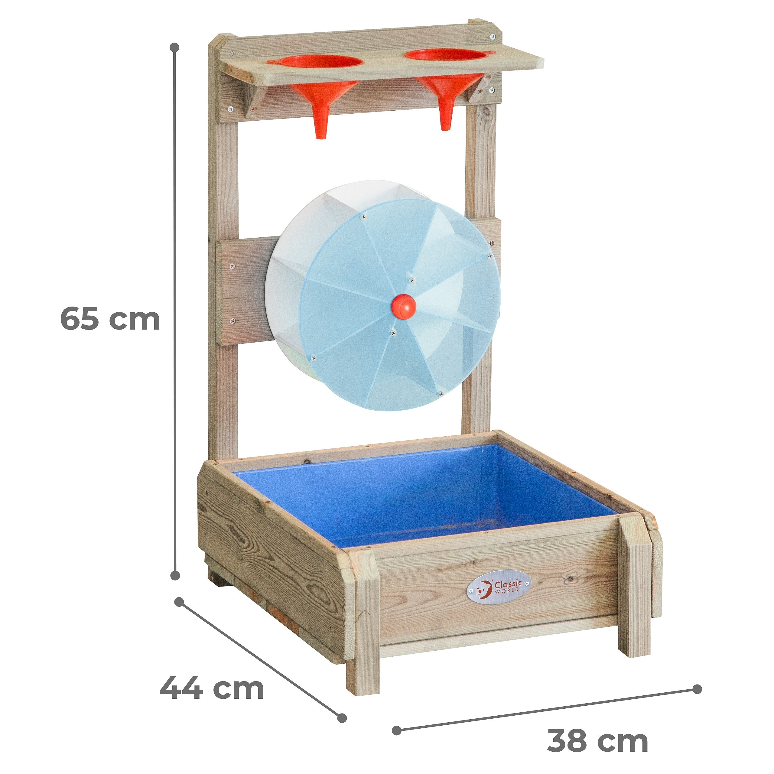 Zabawka Wodna dla dzieci od renomowanej marki Classic World to idealne dopełnienie twojej piaskownicy! Produkt jest wyprodukowany z wysokiej jakości drewna, pomalowany nietoksycznym impregnatem, w pełni bezpiecznym dla dzieci. Po prostu napełnij lejki wodą i obserwuj jak spływa do kołowrotka powodując jego kręcenie. Produkt rozwija dzieciom wyobraźnię, percepcję i logiczne myślenie.