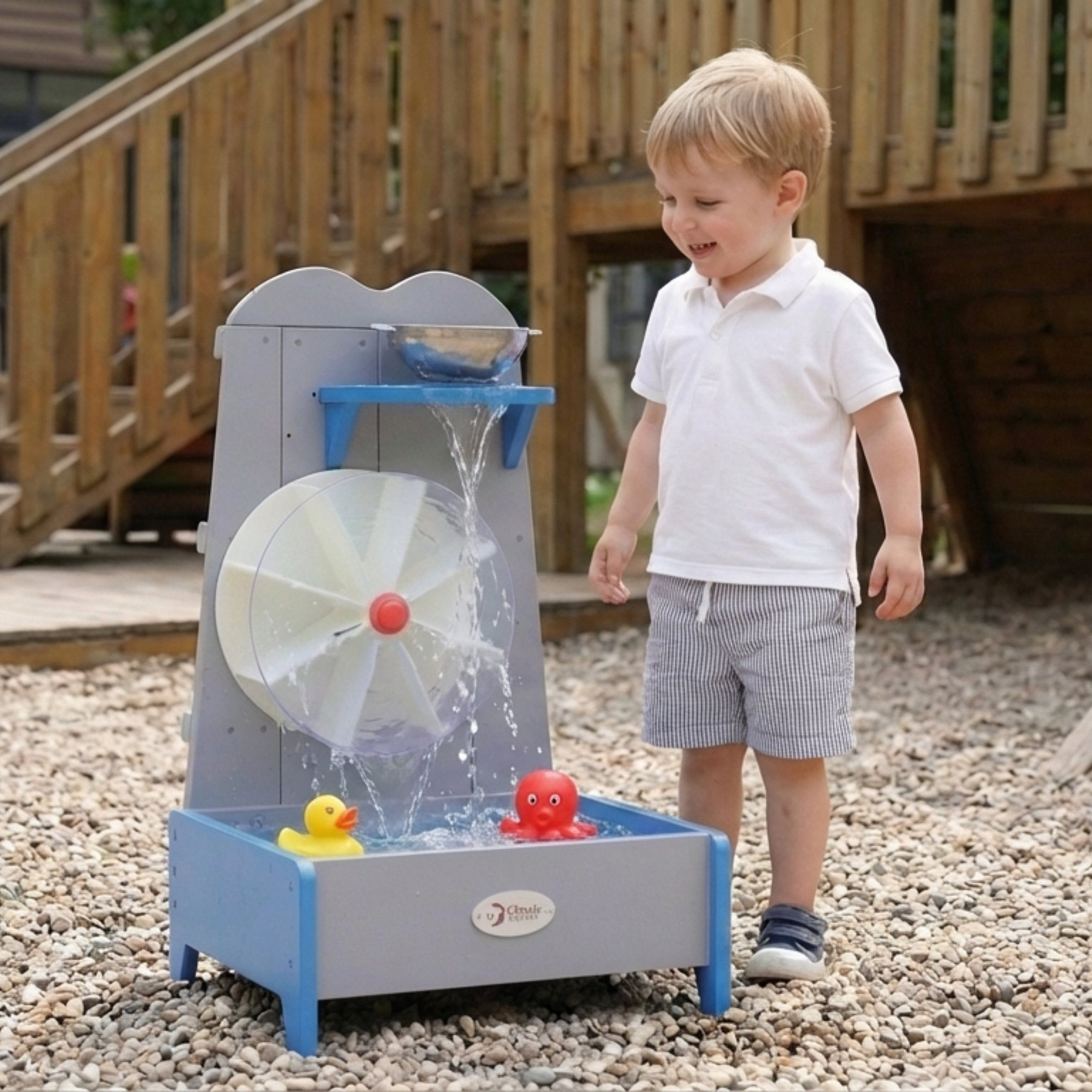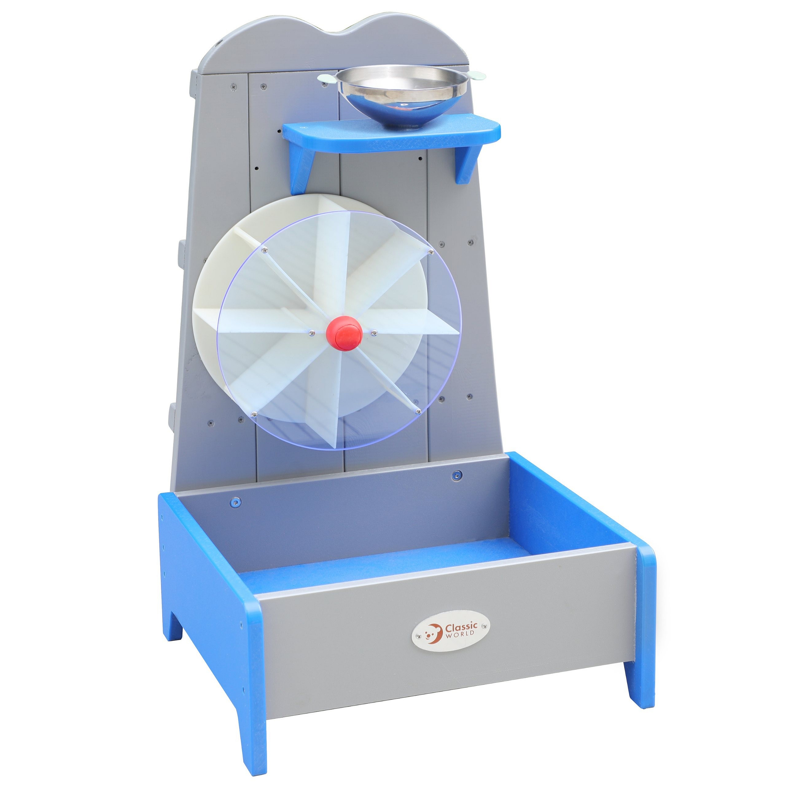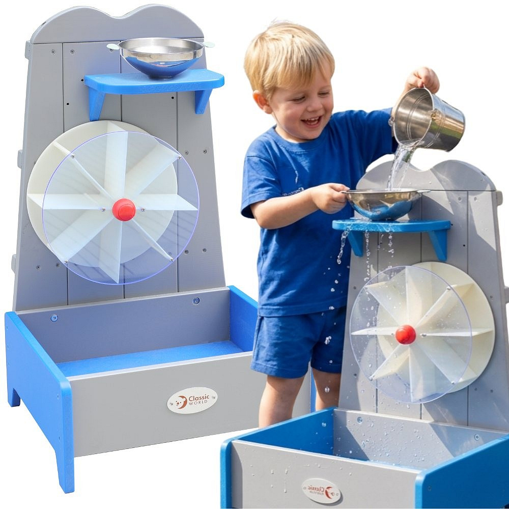 Drewniane koło wodne od renomowanej marki Classic World to wspaniała propozycja na urozmaicenie zabawy na świeżym powietrzu. Ta edukacyjna zabawka wprowadza dzieci w świat fizyki, energii wodnej i mechaniki w prosty i angażujący sposób. Konstrukcja składa się z metalowego lejka umieszczonego na szczycie, przez który wlewa się wodę. Strumień cieczy opada na łopatki wirnika, wprawiając duże koło w ruch obrotowy. Całość zabezpieczona jest przeźroczystą osłoną, co pozwala bezpiecznie obserwować proces, a woda gromadzi się w dolnym zbiorniku, gotowa do ponownego użycia.