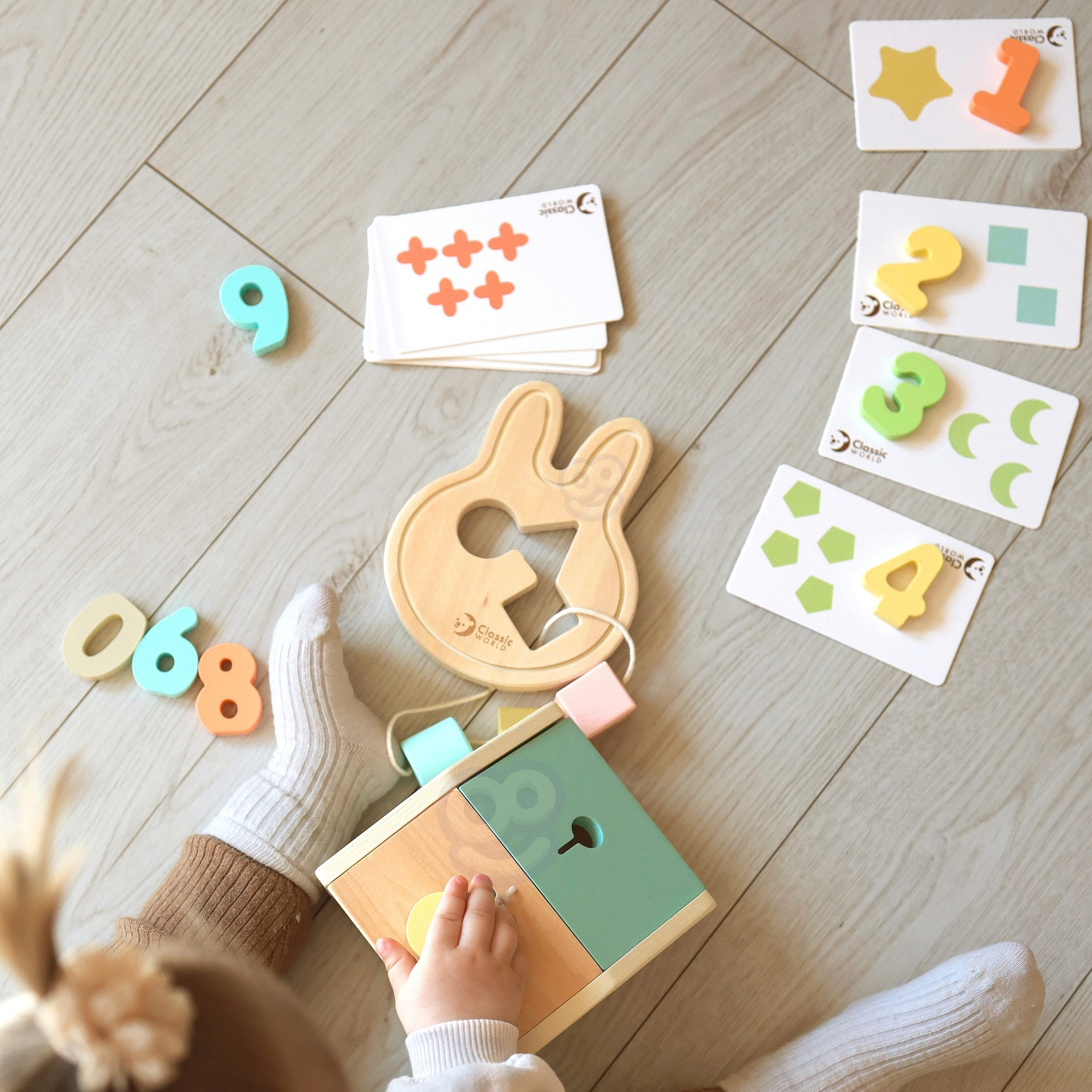 Ten wyjątkowy Powitalny BOX do nauki od renomowanej marki CLASSIC WORLD to idealny zestaw upominkowy dla każdego malucha! Wykorzystuje naturalną ciekawość świata dziecka, oferując zróżnicowane i angażujące zabawki. W zestawie znajdziesz sorter, układanki do nauki liczenia, klocki oraz uroczą zabawkę do przewlekania w kształcie królika. To kompletny pakiet, który w jednym pudełku wspiera wszechstronny rozwój dziecka, doskonaląc umiejętności motoryczne i eksplorację wizualną.