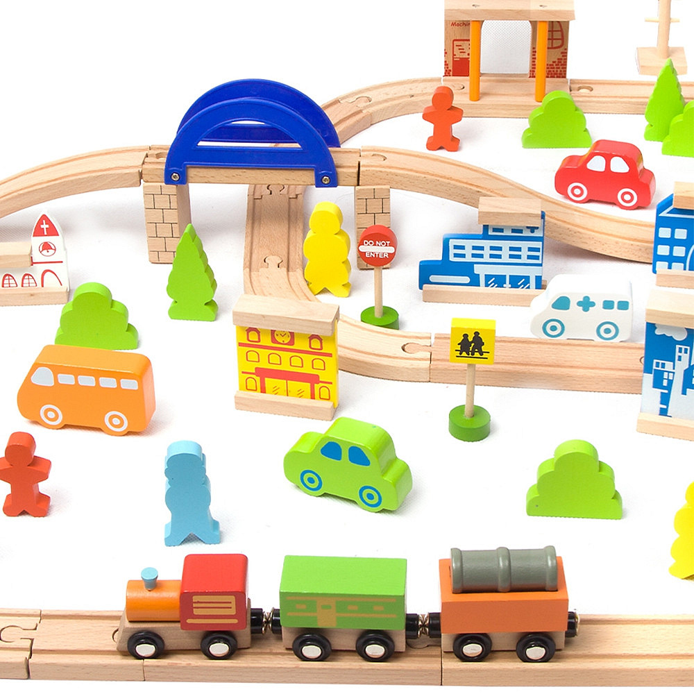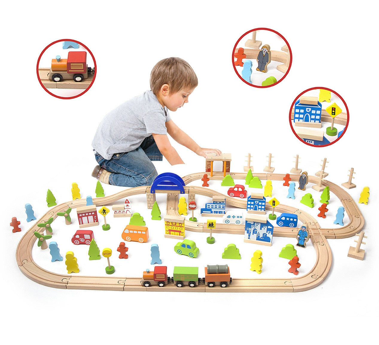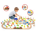 VíceOgromny zestaw marki Classic World. Drewniana kolejka do złożenia ze 110 elementów to wspaniały prezent dla każdego dziecka, który lubi zabawę pojazdami, oraz makietami.