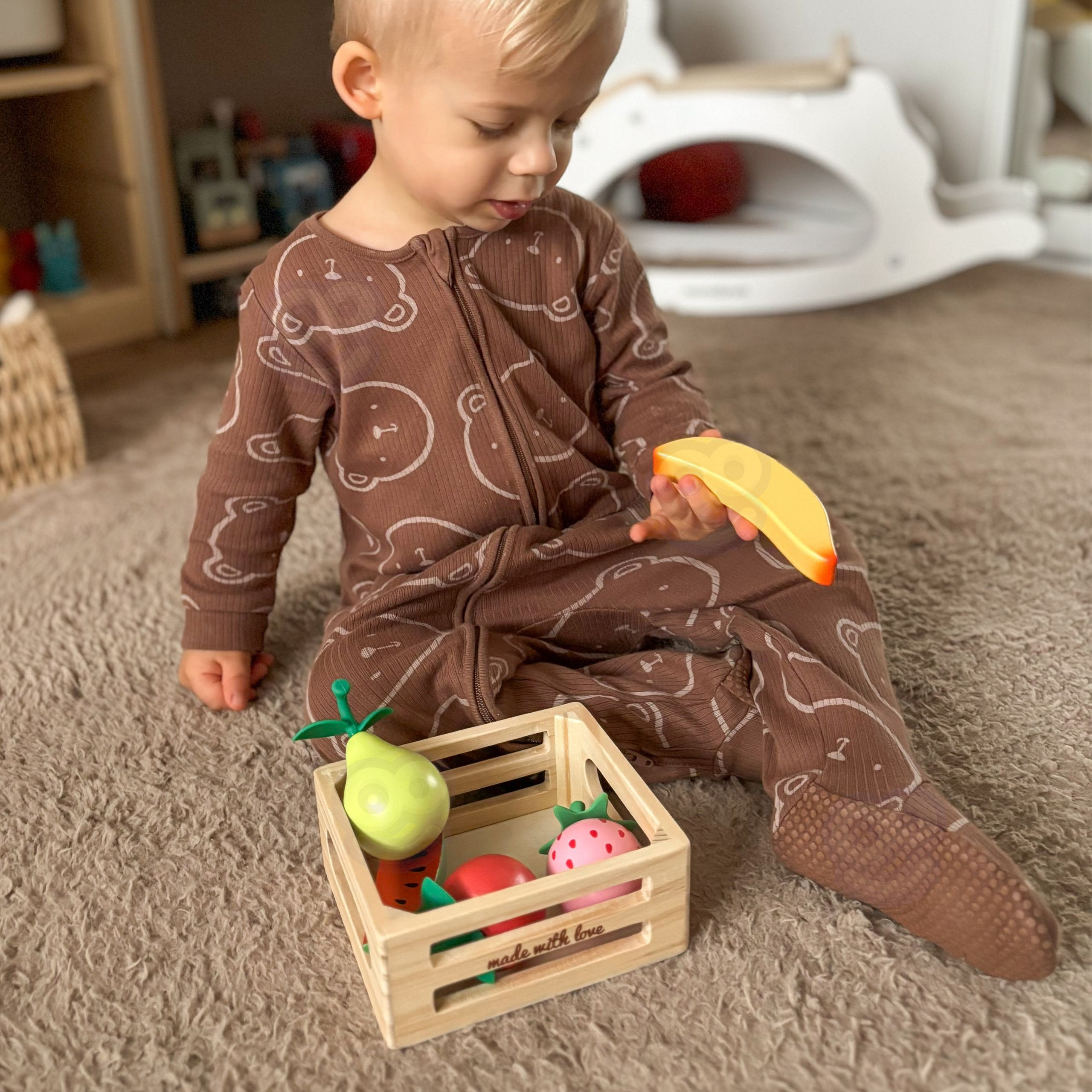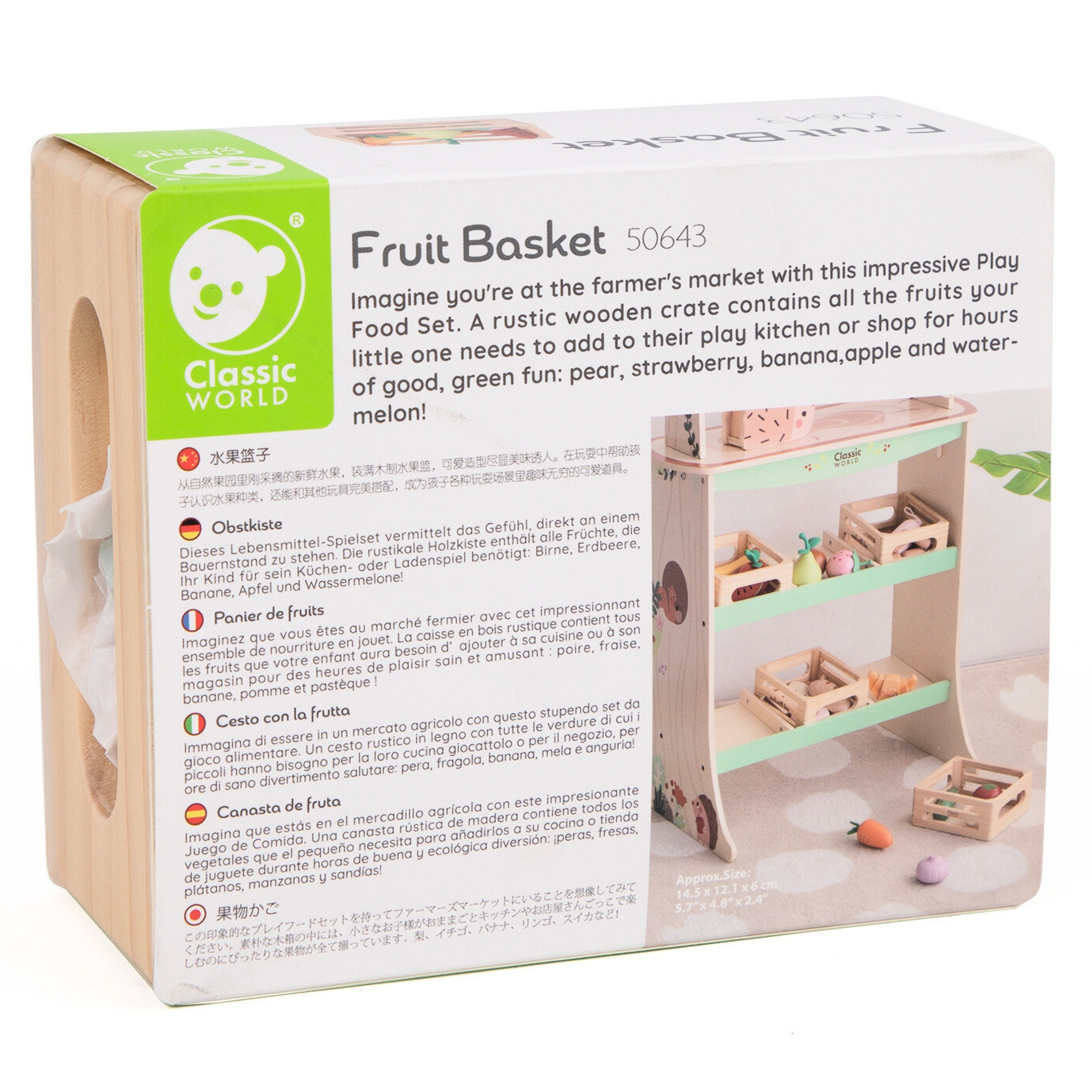 Koszyk z owocami od Classic World to zestaw dla dzieci, które uwielbiają kreatywną zabawę w kuchnię lub sklep. Drewniane elementy odwzorowujące różne rodzaje owoców pozwalają na swobodne odgrywanie ról, rozwijając wyobraźnię i umiejętności społeczne. Każdy składnik zestawu został wykonany z wysokiej jakości drewna. Zestaw świetnie sprawdzi się zarówno podczas samodzielnej zabawy, jak i wspólnego tworzenia z rówieśnikami lub dorosłymi.
