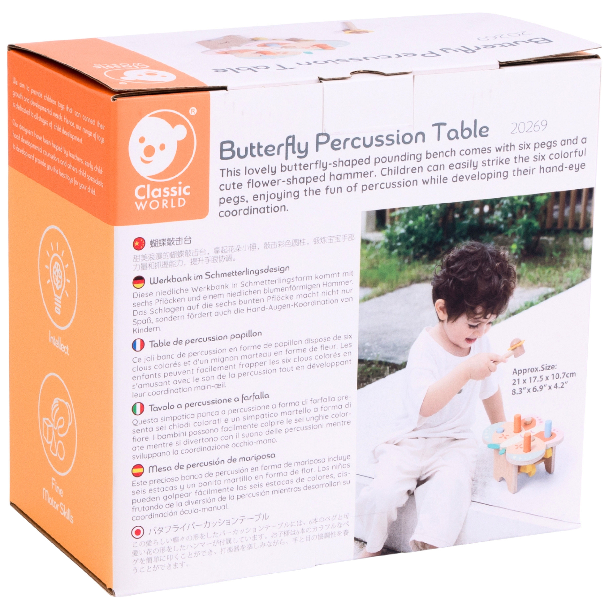 Uroczy Drewniany Przebijak Motylek od marki Classic World to wspaniała zabawka manualna, która zapewni Twojemu dziecku mnóstwo radości i pożytecznej aktywności. Ten kolorowy zestaw w kształcie pięknego motyla został wyposażony w sześć barwnych kołków oraz lekki, poręczny młoteczek stylizowany na kwiatek. Zadaniem malucha jest wbijanie elementów, co dostarcza mnóstwo satysfakcji i pozwala na bezpieczne rozładowanie energii. Dzięki przemyślanej konstrukcji i żywym kolorom, zabawka przyciąga wzrok i zachęca do ćwiczeń. Wykonana z naturalnego drewna i pomalowana nietoksycznymi farbami, jest całkowicie bezpieczna i trwała, idealna dla małych rączek.