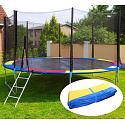 Twice thicker filling guarantees safe play for children and improves spring insulation. The outer material is durable PVC, which is resistant to UV radiation, mechanical abrasion, rain and even high temperatures. These features ensure long-lasting use for many seasons, providing effective protection during jumping.