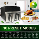 - Dual Basket Efficiency – Featuring two 4.5L baskets, this fryer allows for cooking two different dishes simultaneously. This setup saves time and energy while offering versatility, as you can prepare multiple food items in one go without blending flavors or requiring multiple appliances.