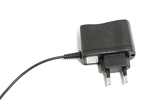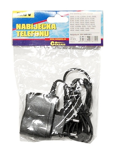 Cestovní nabíječka mobilních telefonů s napájením ze zásuvky 230V.