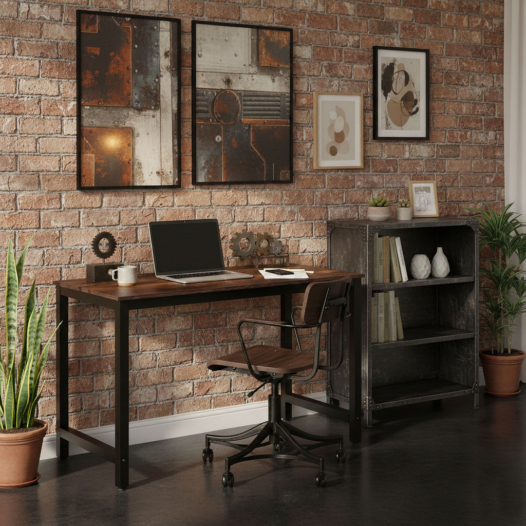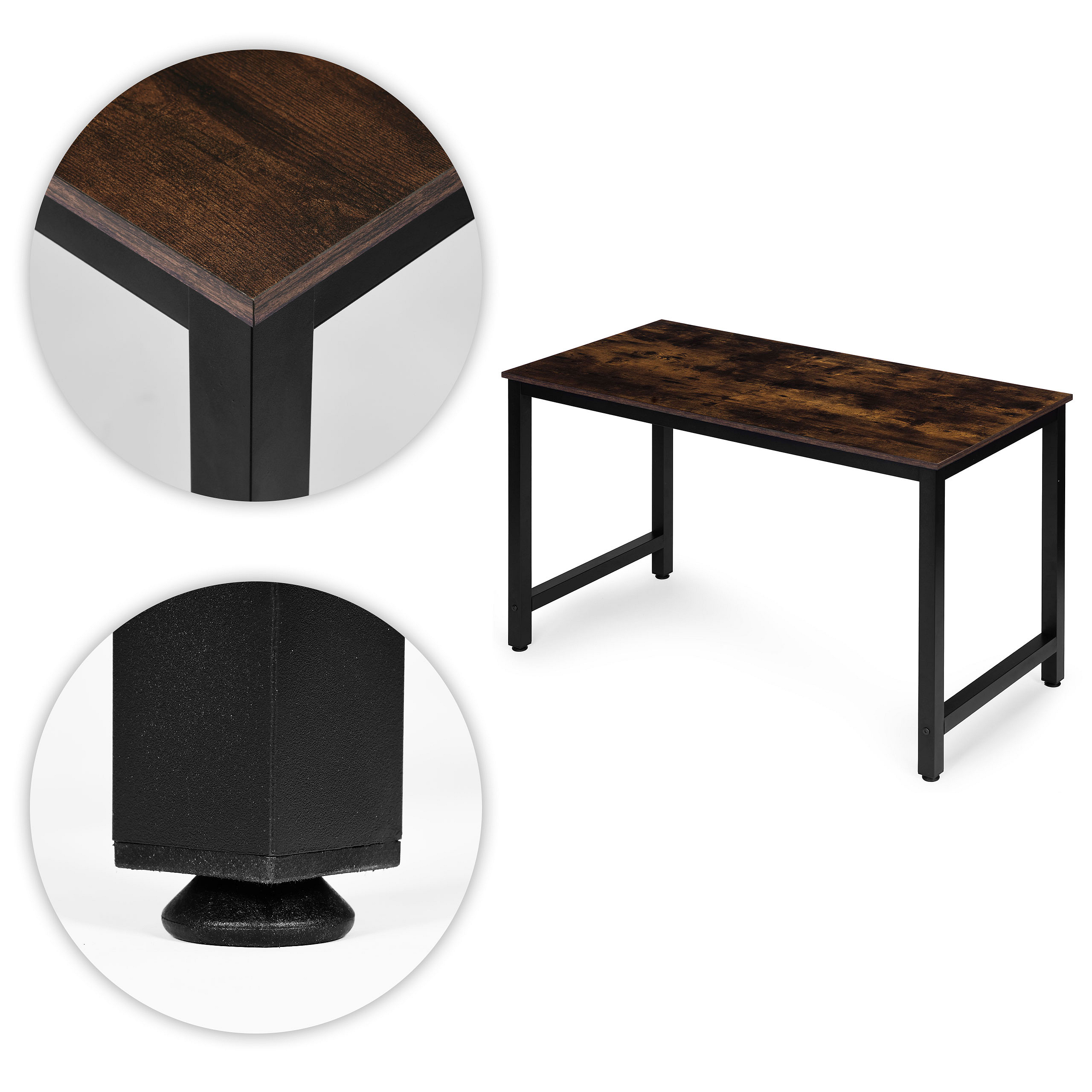 The tabletop is made of durable MDF board covered with melamine, which is scratch-resistant and easy to clean. The structure is supported by powder-coated metal legs, increasing resistance to corrosion and mechanical damage.