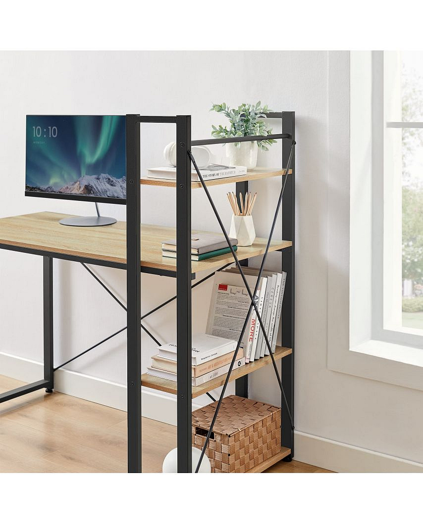 The desk is stable, so we can easily place everything we need for work or study on it - a computer, monitor, speaker set or laptop, printer, desk lamp, books and notebooks. There is room on the shelves for, for example, potted flowers, books or other small items.