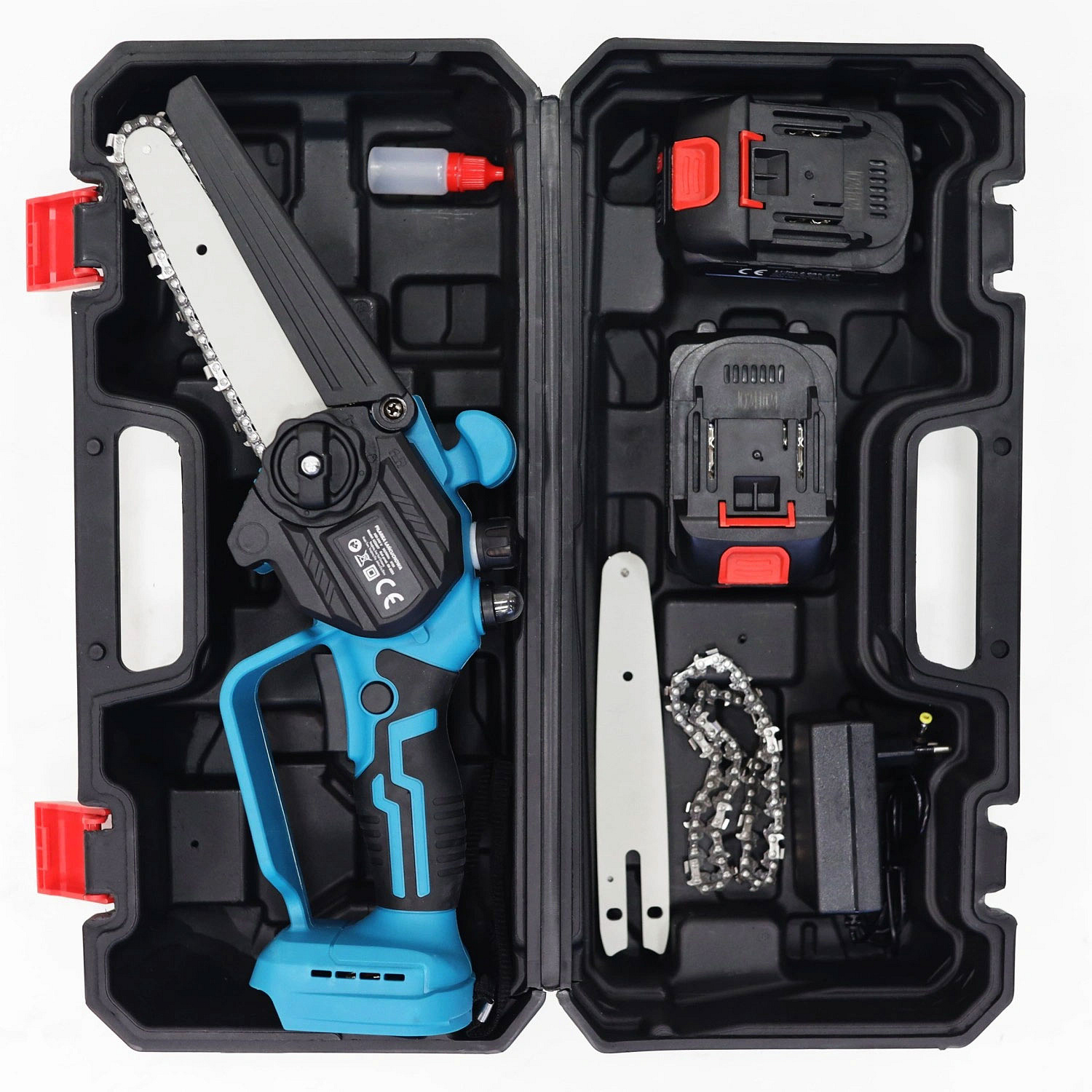 The chainsaw has been carefully packed in a durable carrying case, which allows safe storage and convenient carrying. Included: