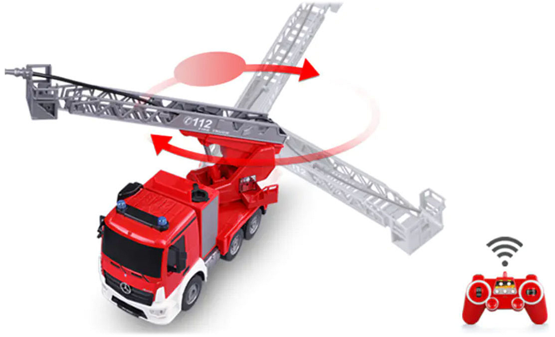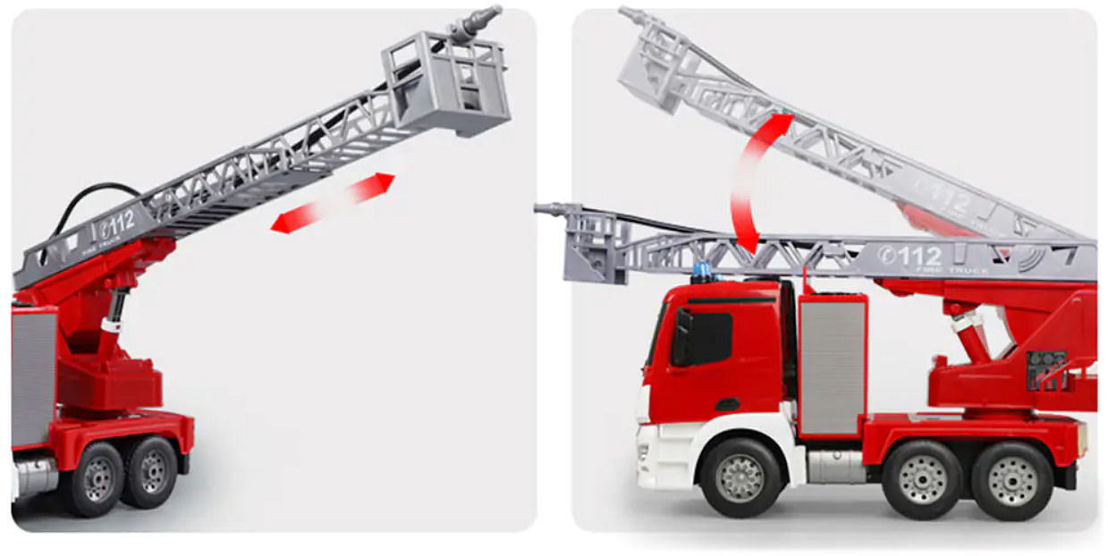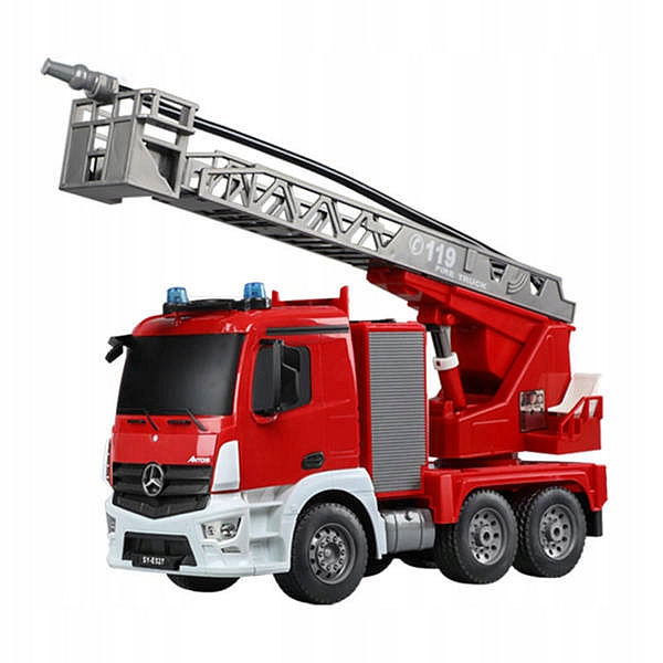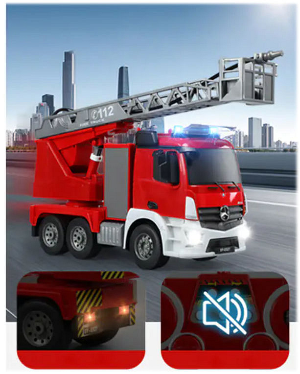 Pojazd sterowany za pomocą pilota, posiada efekty świetlne, posiada węża przez którego może lecieć woda, posiada wysuwaną, podnoszoną drabinę.