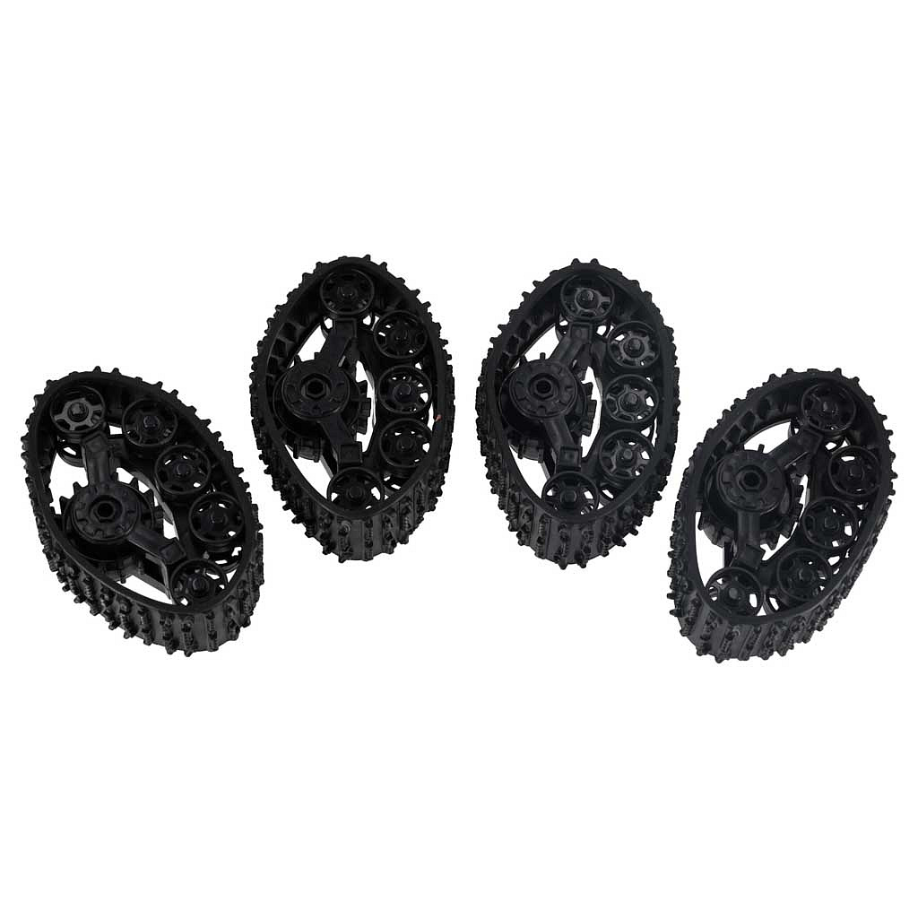 Auto má gumové pásy a gumové pneumatiky, které umožňují jízdu na různých površích.