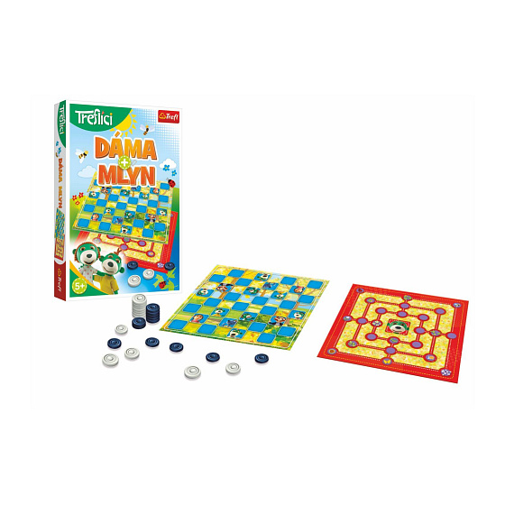 Popis Dáma a Mlýn s Rodinou Trefliků společenská hra v krabici 19x29x4 cm