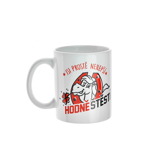Keramický hrnek s originálním textem "Hodně štěstí" a "Jsi prostě nejlepší" je ideálním dárkem. Hrnek je v dárkovém balení, objem 300 ml. Udělejte radost svým přátelům a darujte jim tento úžasný hrnek v dárkovém obalu.