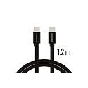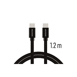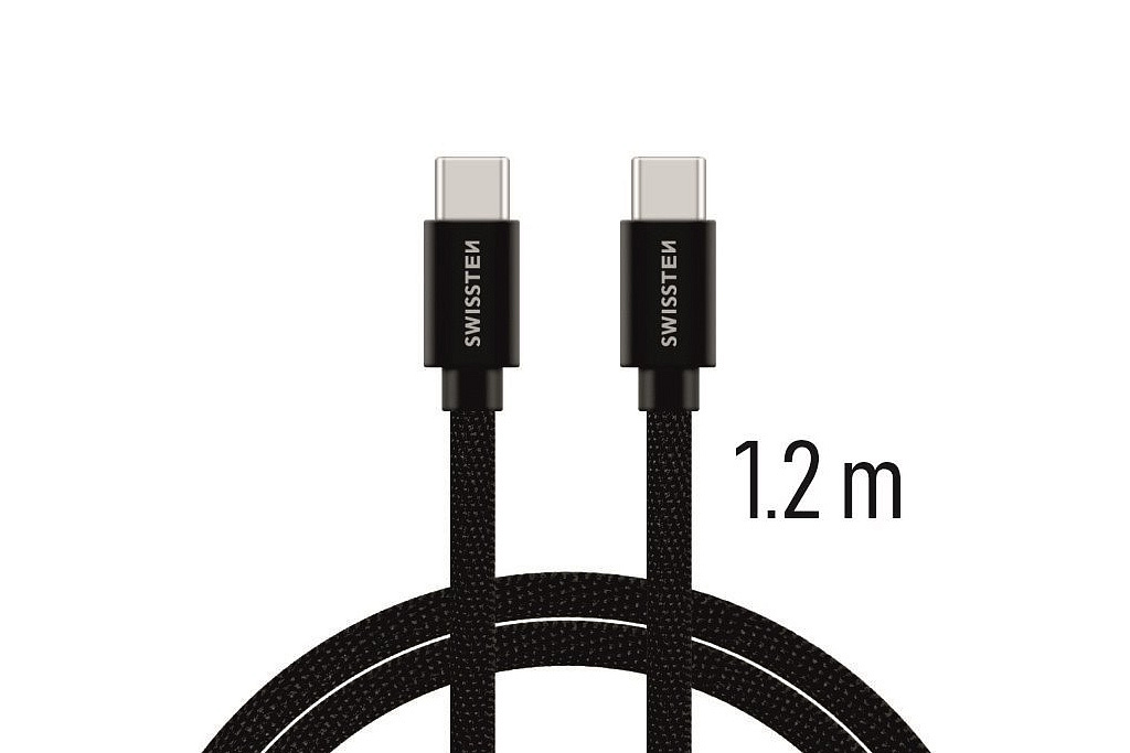 Datový kabel Swissten USB-C/USB-C s kvalitním textilním opletením a kovovými kryty konektorů. Díky délce 1,2m je vhodný do auta, na stůl v kanceláři nebo na noční stolek. Kabel je zesílený a přenese tak větší proud (až 3A) a zvládne i rychlý přenos dat 480 Mb/s. Životnost kabelu v ohybu je více než 10000 ohybů. Kovový kryt konektoru je odolnější proti mechanickému poškození než běžné plastové kryty konektorů.