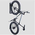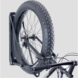 The Pivot Rack accommodates a wide range of bikes with wheel sizes from 20" to 29" and tires up to 4.25" wide. Additionally, it is vertically adjustable, with a height range of 350 mm (13.8 inches) in 35 mm (1.38 inches) increments, allowing for flexible adjustments to fit different bike sizes and storage spaces.