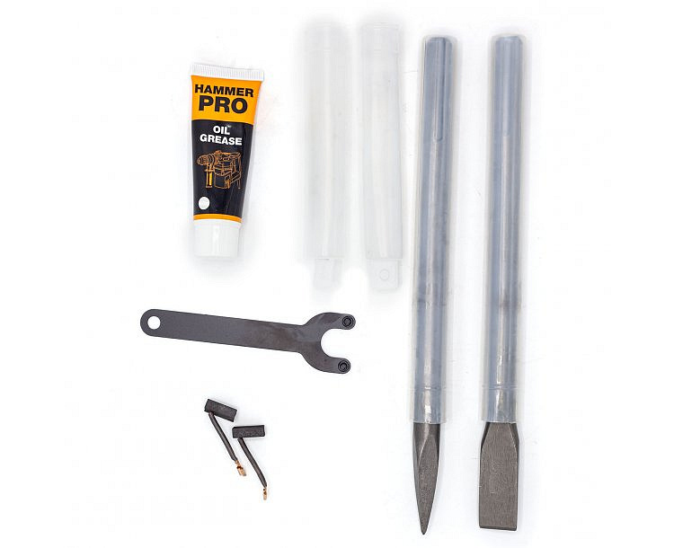 Součástí balení: uhlíkové kartáče, plochý a špičatý sekáč, tuba na mazivo a přepravní kufr. Funkce sekaní. Rychloupínací sklíčidlo SDS-MAX, regulace příklepů Příkon (W) 1300 Síla jednotlivého úderů (J) 18 Počet příklepů (min.-1) 0-3900 Hmotnost (kg) 5,9