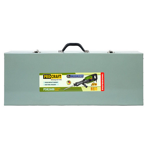 Demoliční kladivo Procraft PSH2600 HEX sklíčidlo, regulace příklepů, rukojeť s antivibračním odpružením Příkon (W) 1200 BEZUHLÍKOVÝ MOTOR Síla jednotlivého úderů (J) 50 Počet příklepů (min.-1) 1400 Hmotnost (kg) 14